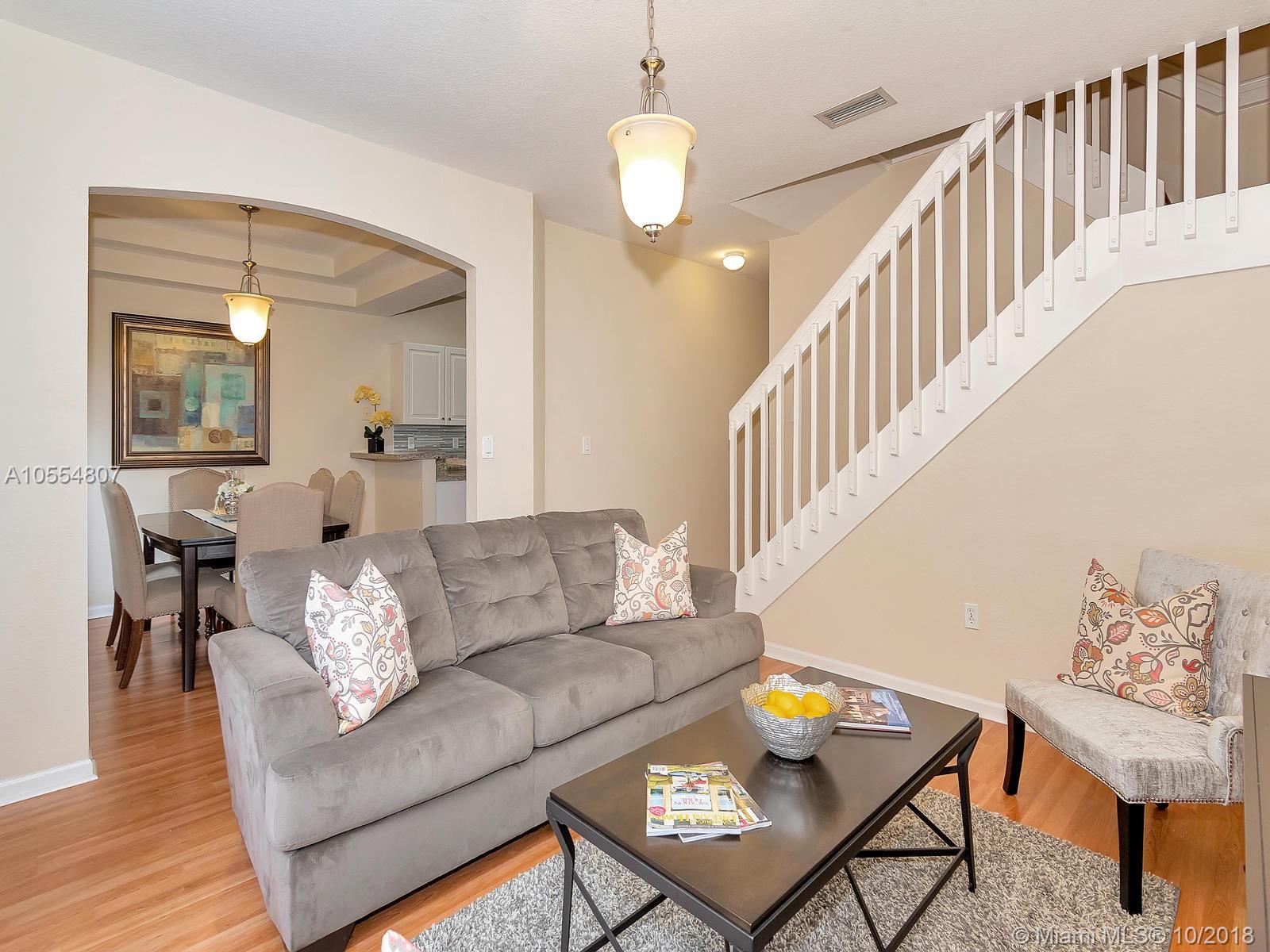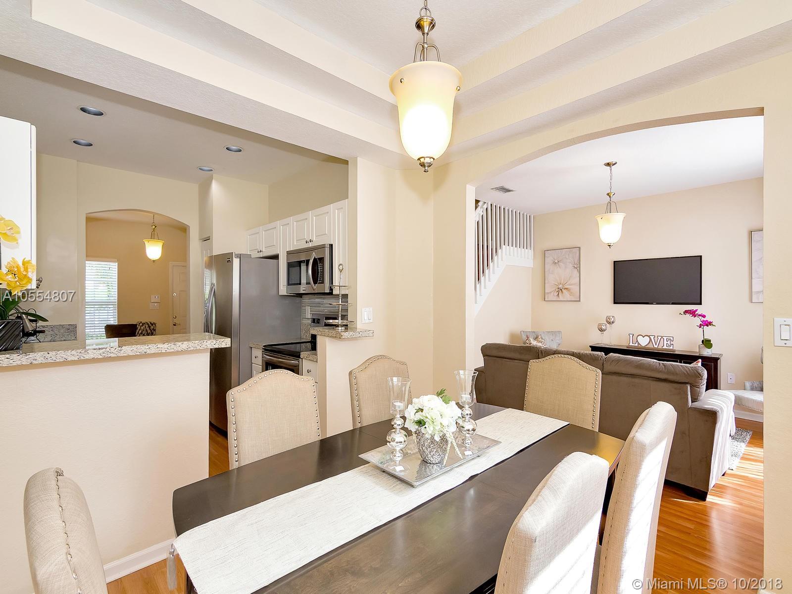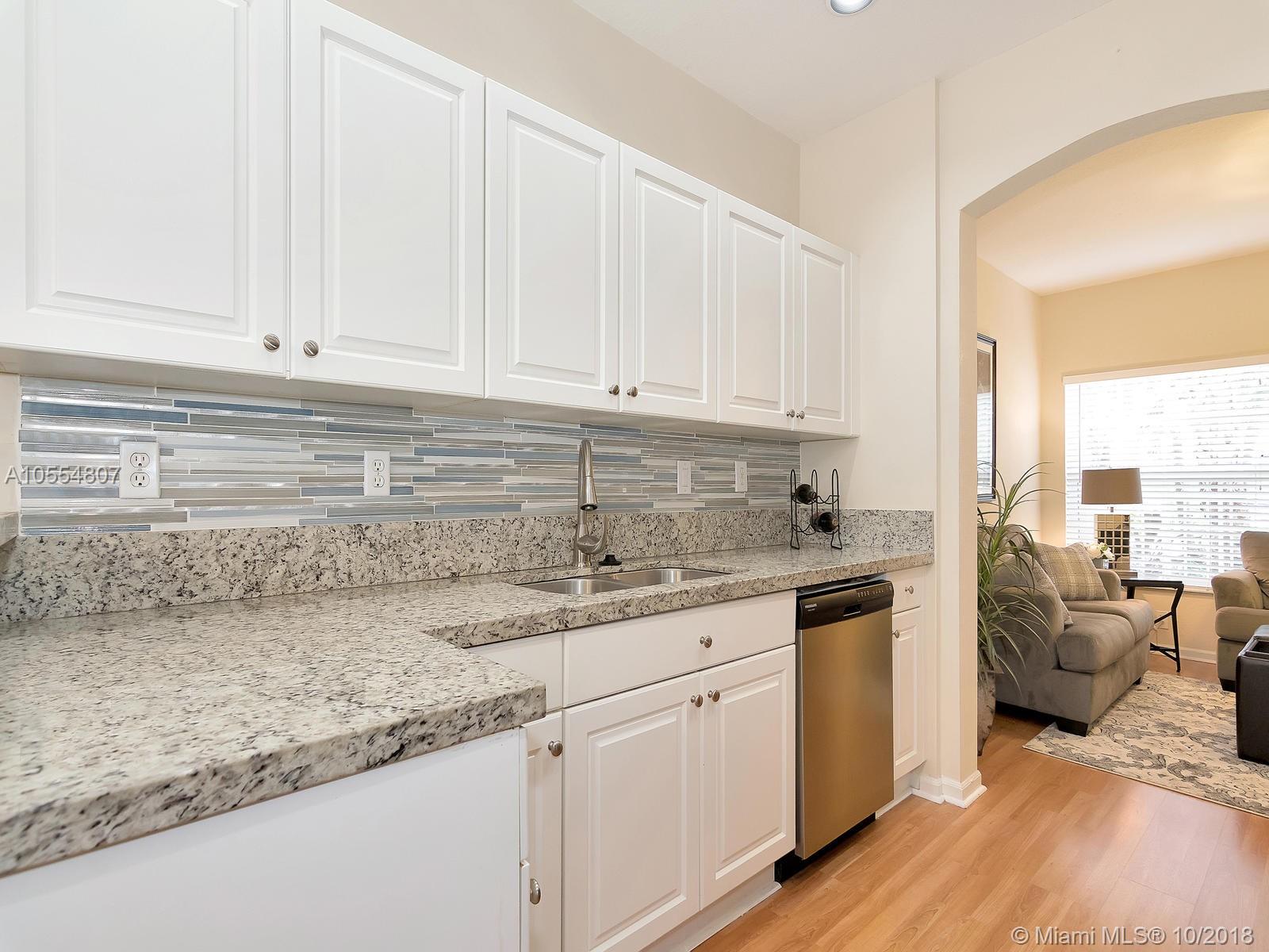 Amenities galore! Elegant guarded entry, mature landscaping, serene lake views, club house with fitness center, multiple pools, playground and picnic area. Enjoy resort style living in prestigious Pembroke Isles in a remodeled townhouse with 3 bedrooms, 2.5 bathrooms, and 1-car garage. Kitchen features brand new stainless steel appliances, granite counter tops and texture stone back splash. New sink cabinets installed in bathrooms. Neutral tile on first floor and laminate wood floors upstairs.