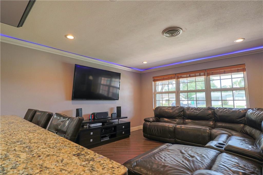 Upgraded home in Cooper City with New roof in 2016, Updated kitchen and floors, Hurricane Impact Windows, LED lights installed in crown molding throughout the home, AC replaced in 2016 & tank less water heater. Kitchen has a huge island with drop down custom lights with latest appliances. USB connection and cable ready wiring throughout the home. Custom closets in all bedrooms with the latest nanny cam's installed throughout the home. The best and last thing is the pool which is salt water, heated with a Jacuzzi and a covered canopy great for entertainment. The backyard also contains a playground for small children and a hook up if you choose to setup a kitchen outside along with a storage that is under the same roof.