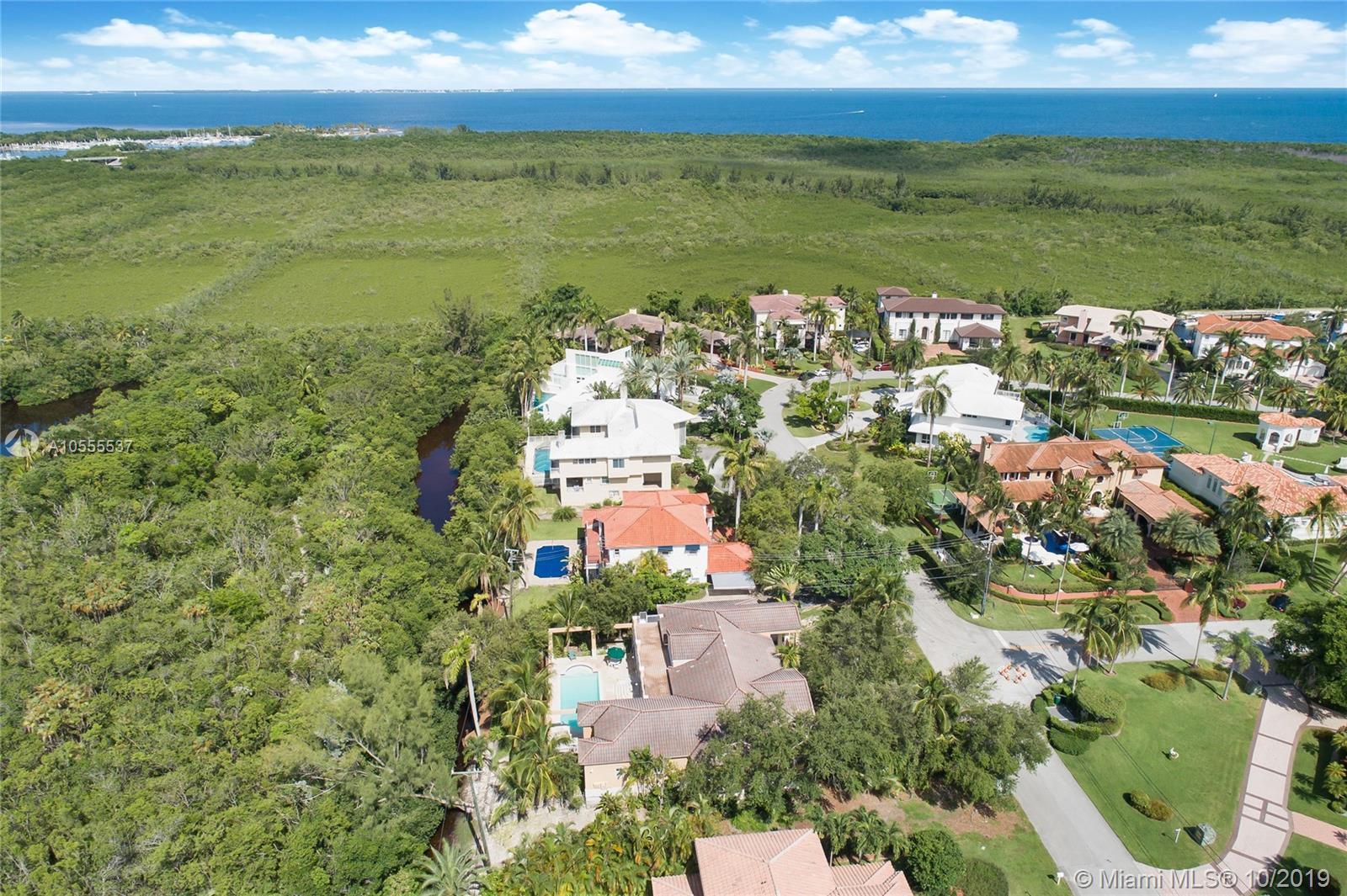 This nature lovers paradise is a FAME award winning masterpiece designed and built by its current architect owner. It is the lowest priced home in gated Hammock Oaks off Old Cutler in Coral Gables and has 5 bedrooms and 4 baths with 4,185 adjusted sq. ft. It has a formal Living and Dining Room and a large open Kitchen/ Family Room area. All main living areas open with a stunning and expansive view of the large covered rear terrace and a 36’ long swimming pool with a creek and lushly landscaped yard overlooking Fairchild Tropical Gardens. There is a beautiful large private deck over the creek. Inside walls were recently painted white. 45 foot boat dock slips are for sale one block away. It has an over-sized two car garage. It belongs to the top rated Pinecrest School. Priced to sell.