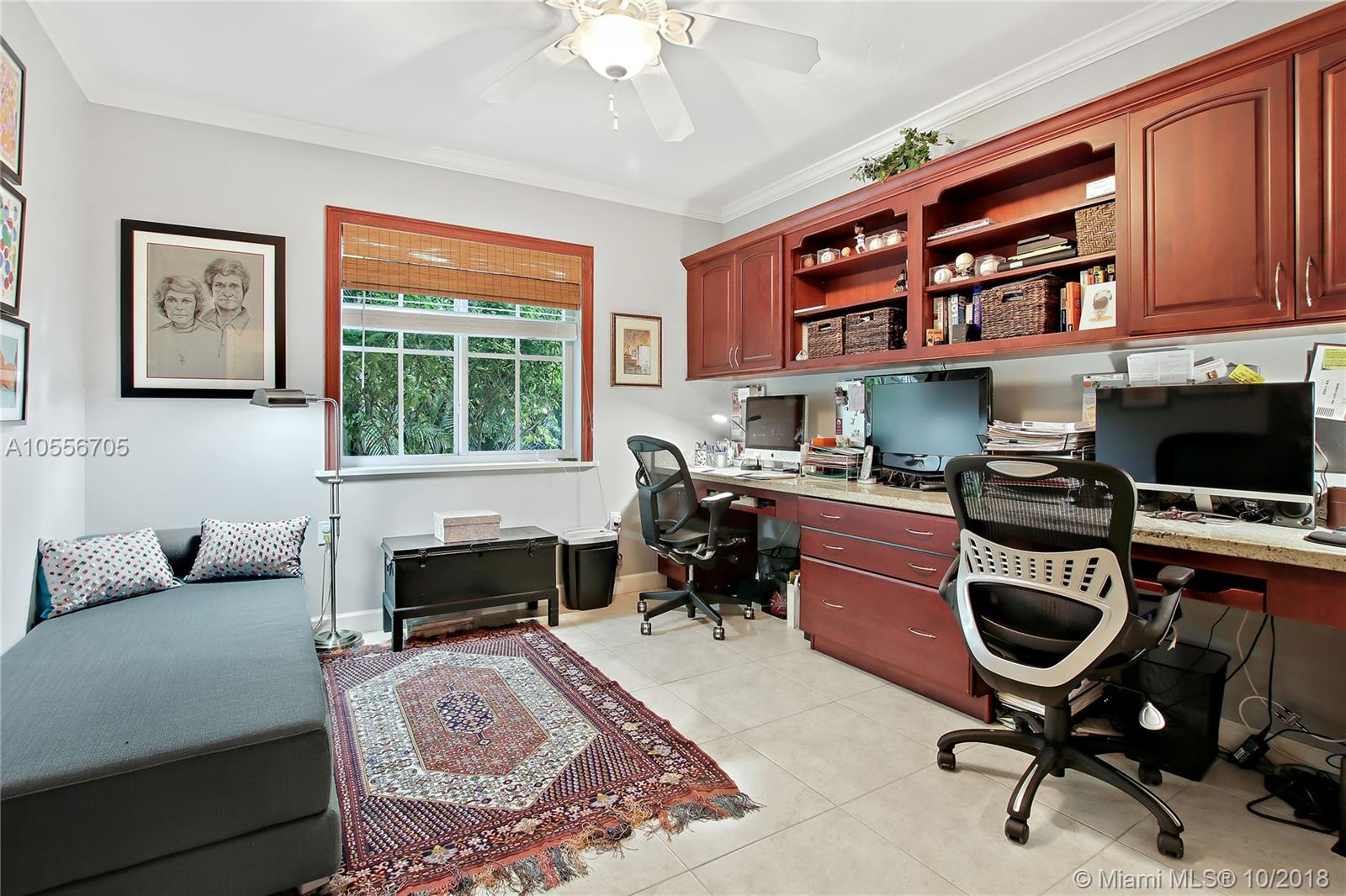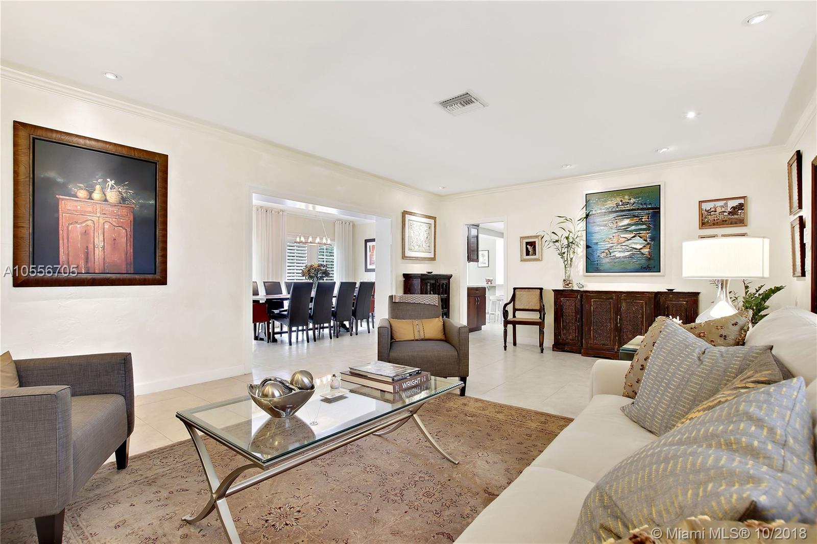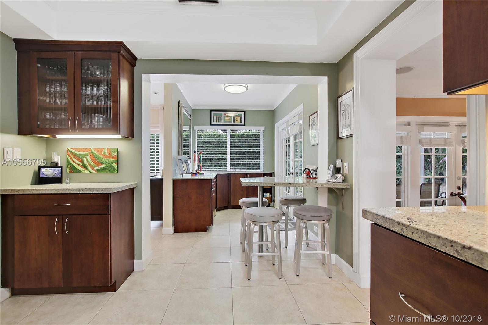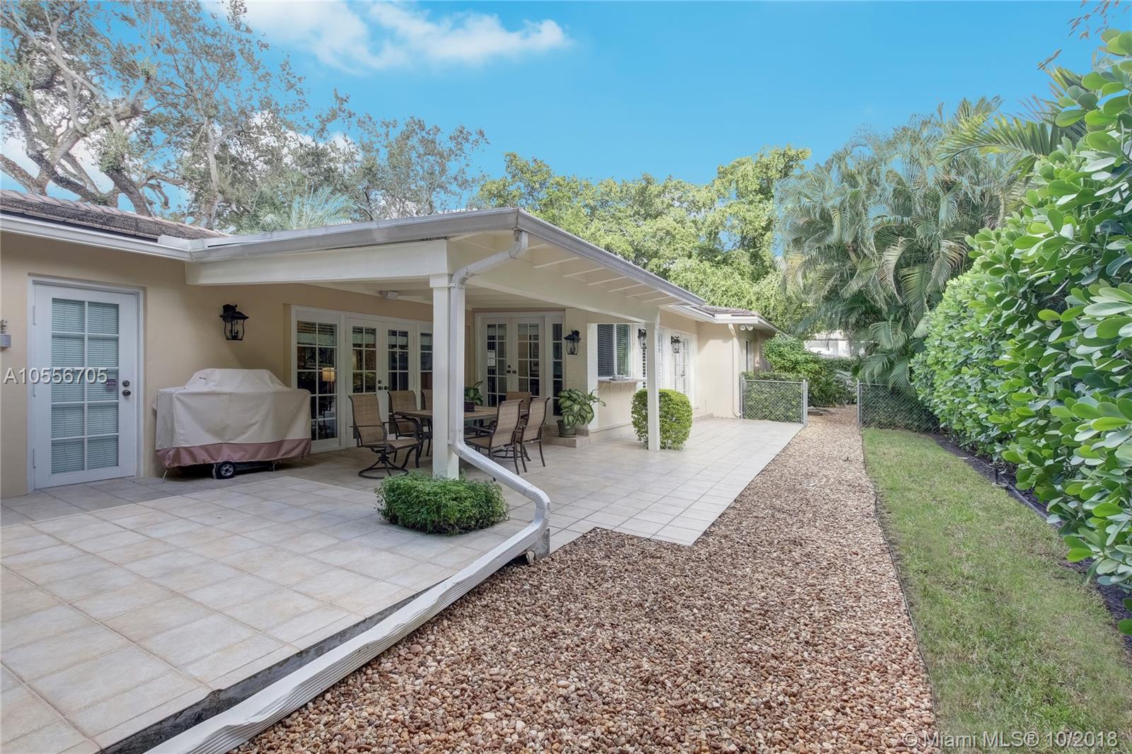 Sought after South Gables updated home beautifully maintained with impact windows and doors plus 2007 roof. Additionally there is a large separate dining room and a separate family room overlooking the covered outdoor patio used for entertainment and enjoyment with the lush gardens enclosing the entire property for privacy. The three bedrooms are generous with one built out for an office/bedroom. Renovations include the bathrooms and kitchen, plus a separate bar area with a wine refrigerator also leading to the outdoor patio. Room for a pool.