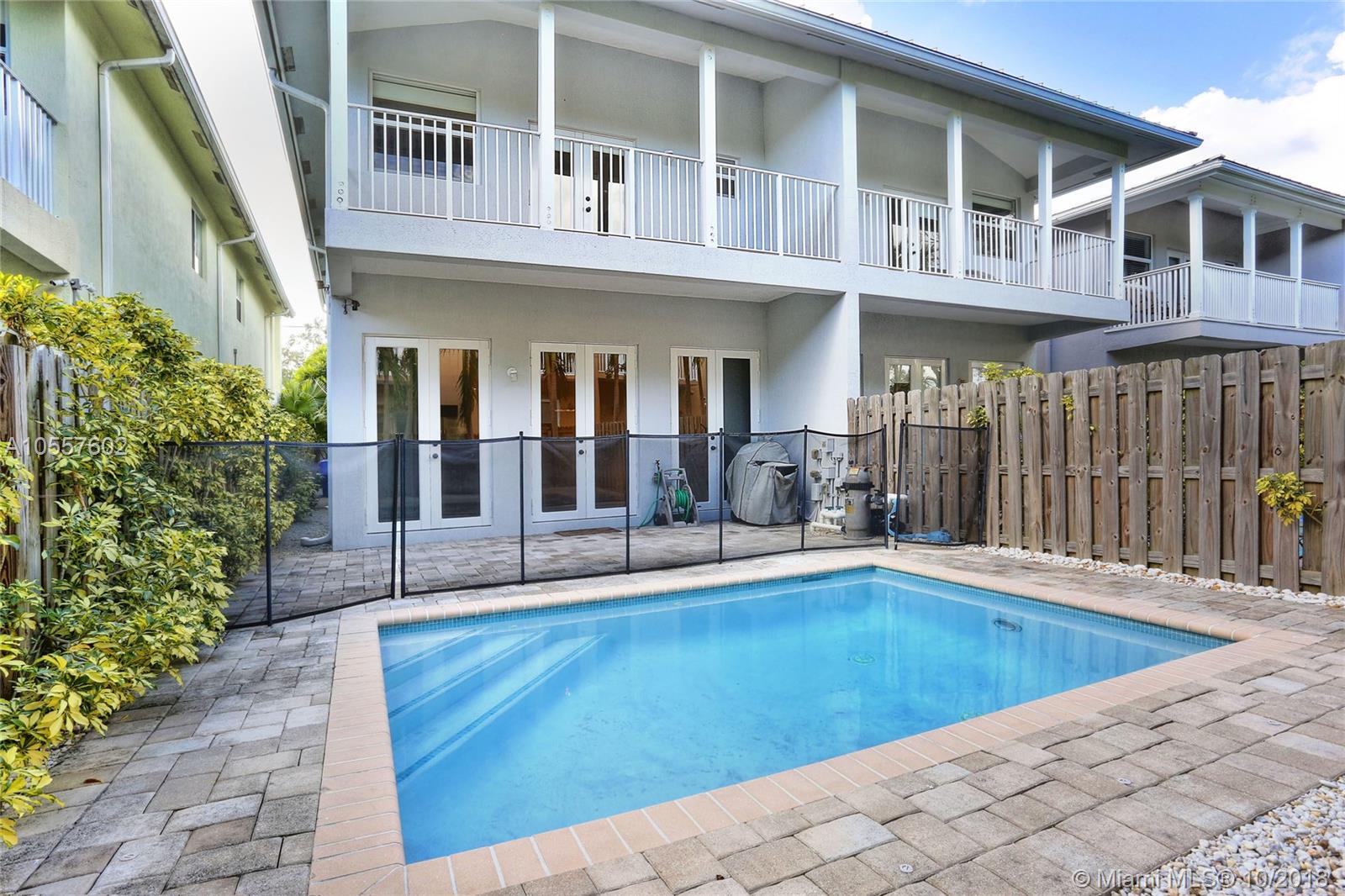Stunning, Key West style townhome close to the Grove village center’s galleries, boutiques, cafes and bayfront parks & marinas. Light-filled living spaces including formal living/dining and family room that opens to private terrace & pool. Custom kitchen with wood cabinetry, stainless appliances, granite countertops and breakfast bar for informal dining. 3 BR/ 2.5 BA + 2nd floor den. Luxurious master suite with large terrace & spa-like bath with frameless glass shower. Notable features include porcelain tile & wood flooring, custom window treatments, impact glass throughout, and 1 CG w/ gated parking. Minutes to downtown, MIA, Coral Gables, Key Biscayne & the Beaches.