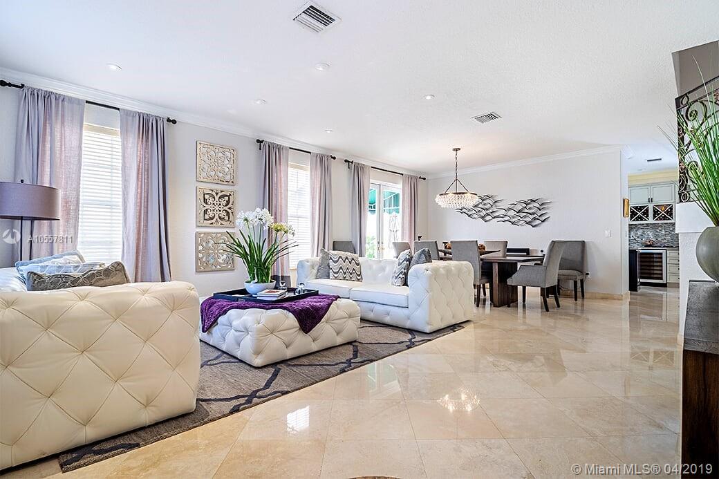 A cooks dream kitchen that has been extended and remodeled, GE monogram appliances, built in fridge, gas stove, wine cooler, high end cabinets with soft close drawers and pull out trays, lots of storage, ($100k in upgrades). 2 brand new Lennox a/c systems (less than a year old) variable speed 16.5 seer ($14,000). Built in high end entertainment center custom cabinets, electric fireplace and plenty of storage. Very private and easy to maintain Tropical manicured yard, high end faux grass ($12,000) perfect for entertainment and kids play area, BBQ area with large counter and shaded seating area. Office space that can be easily converted to playroom, storage or back to original 2 car garage. Garage door operational upgraded to hurricane codes. Somfy programmable electric shades upstairs.