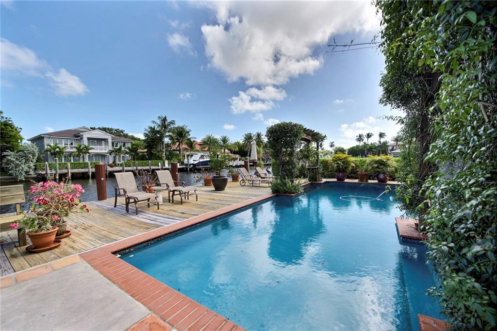 80' waterfront! No fixed bridges to ocean! First time on the market! Charming 3 bedroom 3 1/2 bath one story home with gated courtyard entry on 80' of water on exclusive SE 8th Street Isle in Rio Vista. Living room is at the center of the house with wood burning fireplace and vaulted ceiling. Entertaining is a breeze with the wet bar and climate controlled wine cellar. Gourmet eat-in kitchen with gas range, warming oven, huge quartz center island, and plenty of cabinets. Master bedroom suite overlooks the water, and includes his and hers closets, whirlpool tub and new shower. Property features a certified butterfly garden, rose garden in the back yard, waterfront pool and an orchid house on the side yard, as well as numerous tropical plants and flowers. View drone virtual tour!