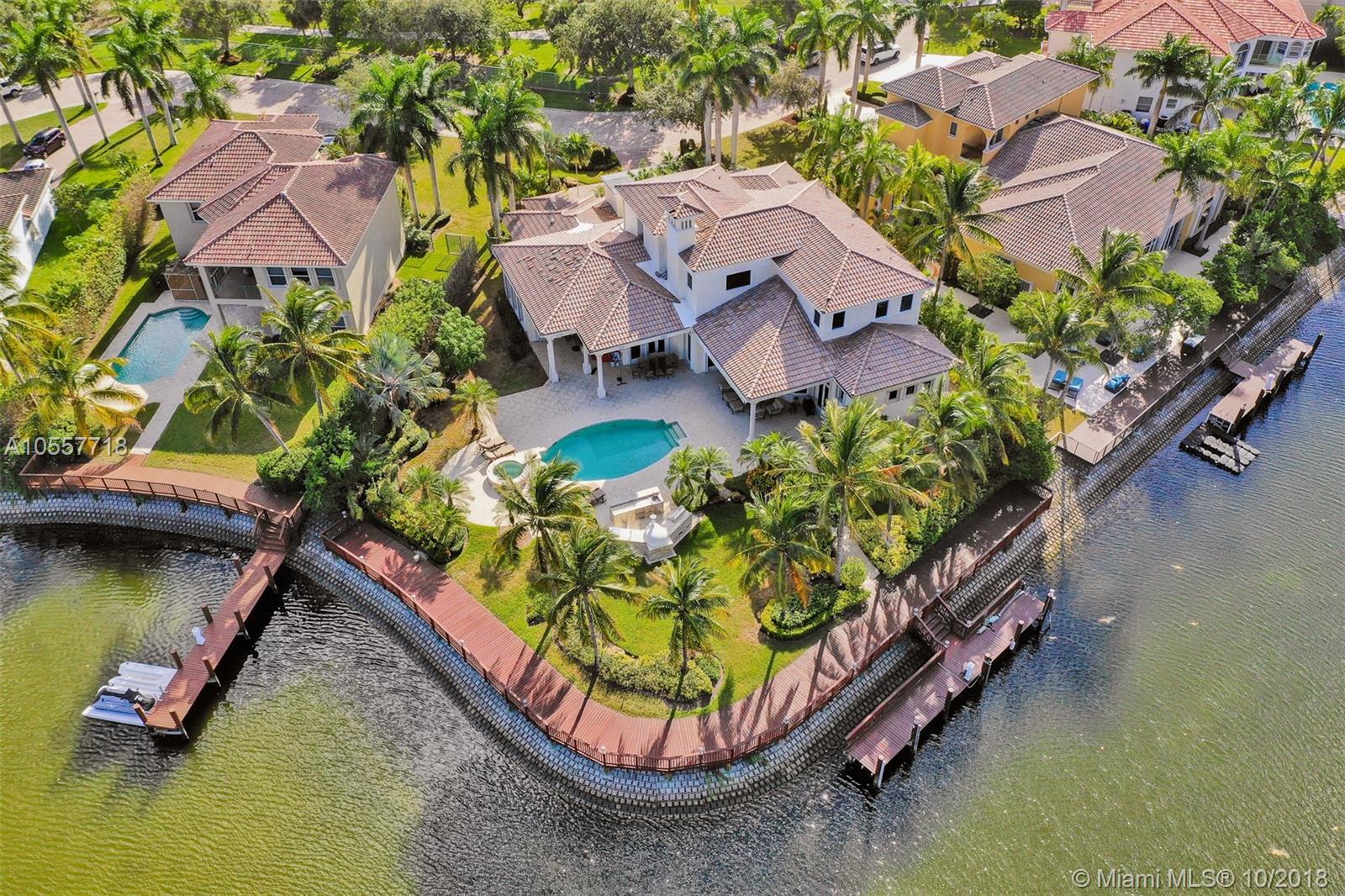 This one of a kind waterfront custom built home has everything you would expect. Spectacular 18,482 sf lot with 185' of waterfront. 5 bedrooms, 7 baths + office and media room. This home has features including a 185' waterfront deck & private dock with ocean access. Spectacular outdoor kitchen with pizza oven and craft beer tap, heated pool with spa and a full house generator. Steps to a 20 acre park with biking and jogging trails. This luxury waterfront community offers a marina, clubhouse, parks, tennis and basketball courts, 24-hour security patrol and fitness center.