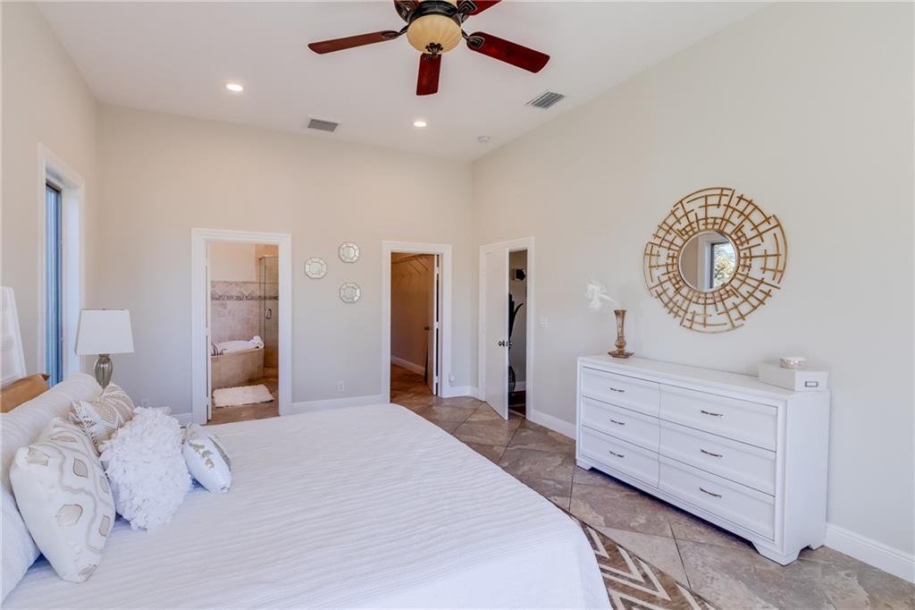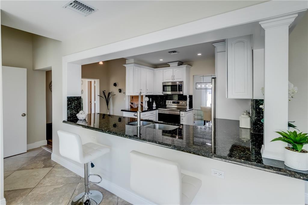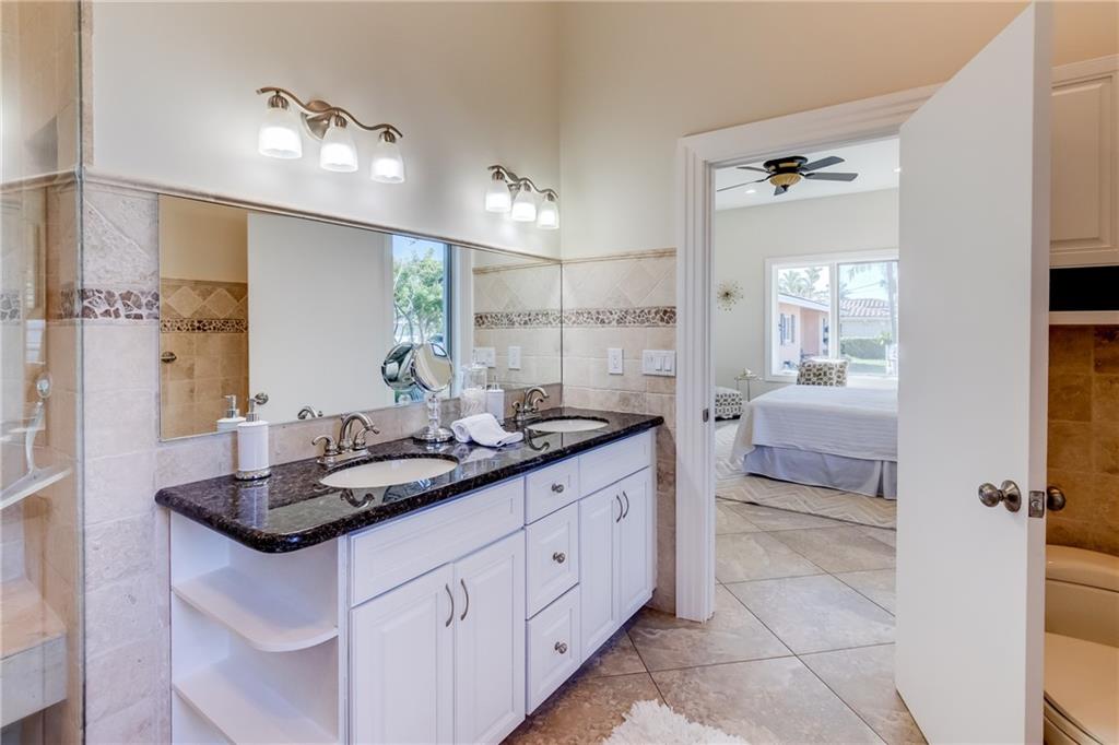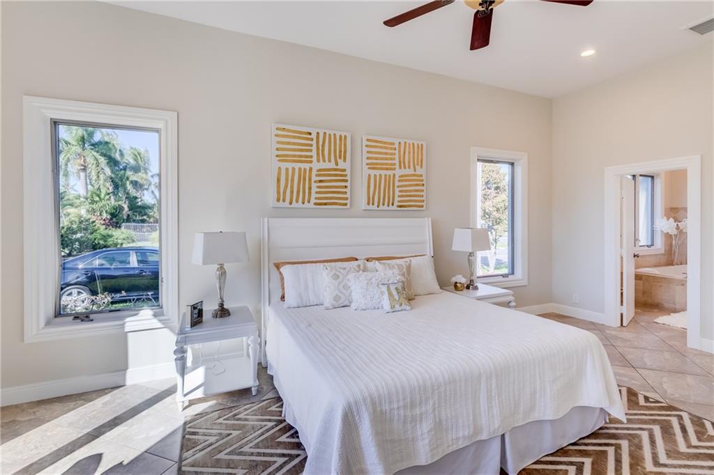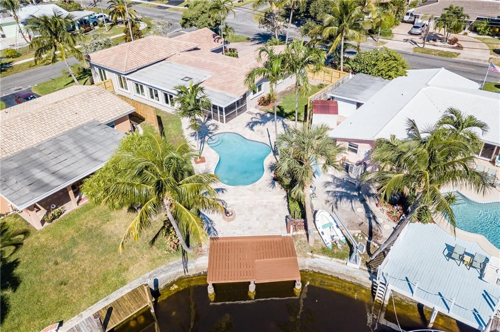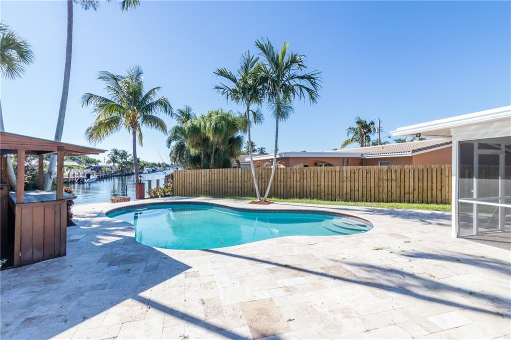 Welcome to your fully updated 4/3/2 private tropical boater's paradise with breathtaking views of ocean access waterway in two directions!! Only one fixed bridge at US-1 about 12 feet high, open travertine pool deck plus screened porch, tiki bar, fire pit, step down to private dock. Large 20" tile throughout main house, plank tile in the 4 bedrooms. 2 separate master quarters with a total of 3 bathrooms within 2,520 sf of air conditioned space to accompany guests and family, open granite kitchen looking out to house and waterway. Separate dining and living areas with open feel. Neutral colors & bright trim throughout. Large insulated casement windows with accordion shutters. Walk in closets & interior laundry room. New appliances, water heater, ice cold ac, electric, fence and more
