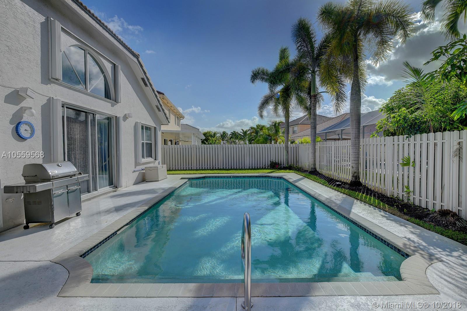 STUNNING AND IMPECCABLE Single family pool home in beautiful Sandal Bay @ Pembroke Shores. PRIME location. Gated community. Home features gorgeous crown molding throughout, vaulted ceilings, soft neutral colors, completely tiled living areas, beautiful updated kitchen featuring tiger tail granite counter tops, white custom cabinetry and 2017 stainless steel appliances. Central AC replaced in 2012 & water heater replaced in 2015. Accordion hurricane shutters and a beautiful pool & patio area are just some of this home's pristine features. Home shows like a model and has a fantastic floor plan. Show with absolute confidence to the most demanding of buyers...home WILL NOT disappoint. Agents, please read broker remarks. Washer and Dryer excluded from sale. Check out the virtual reality tour!