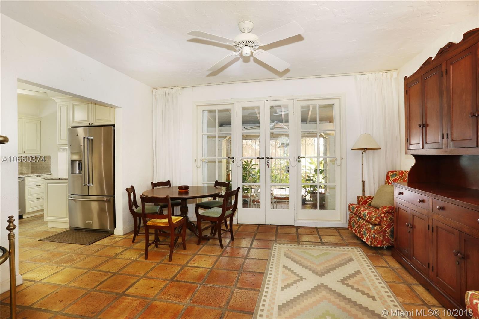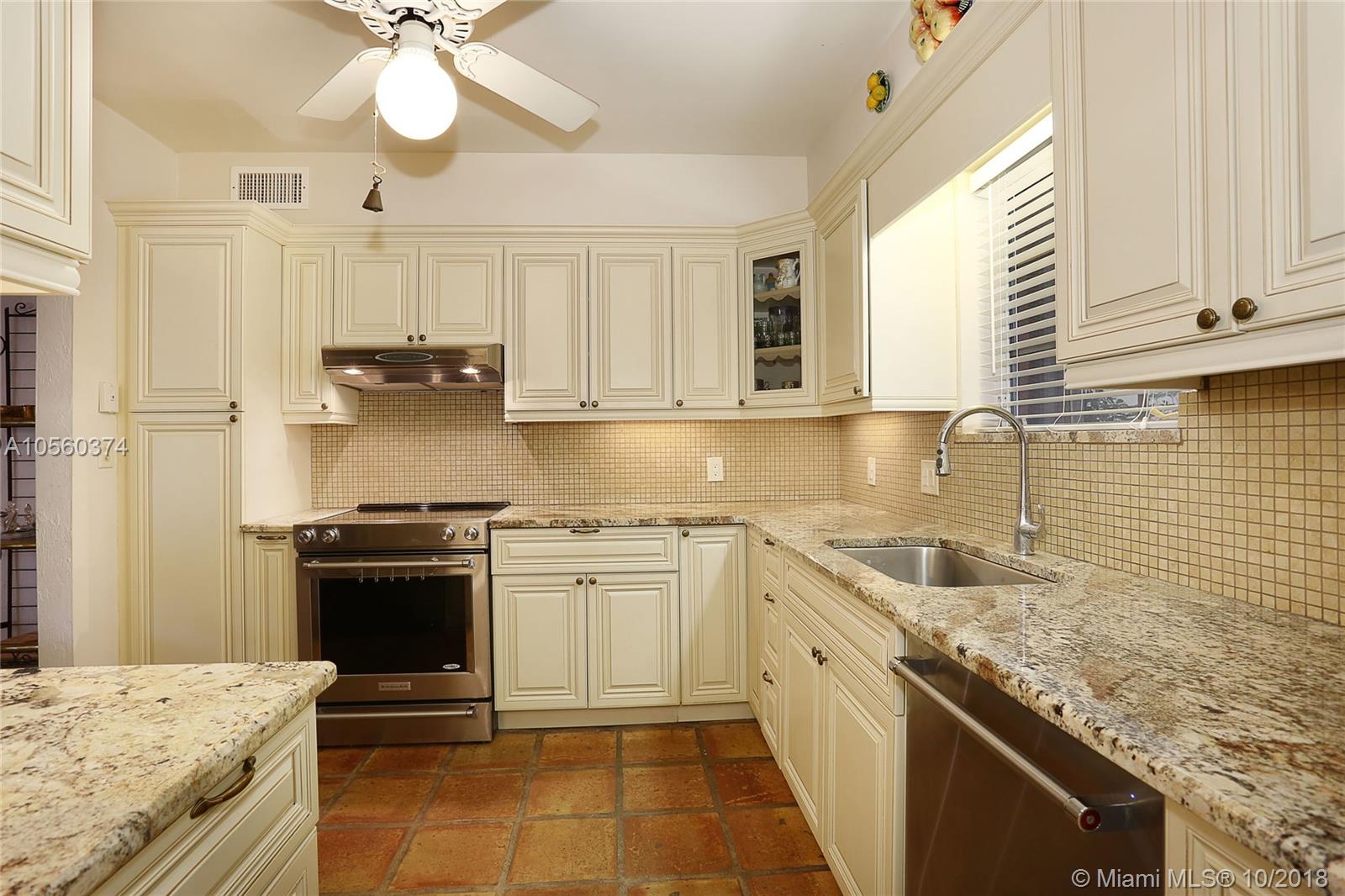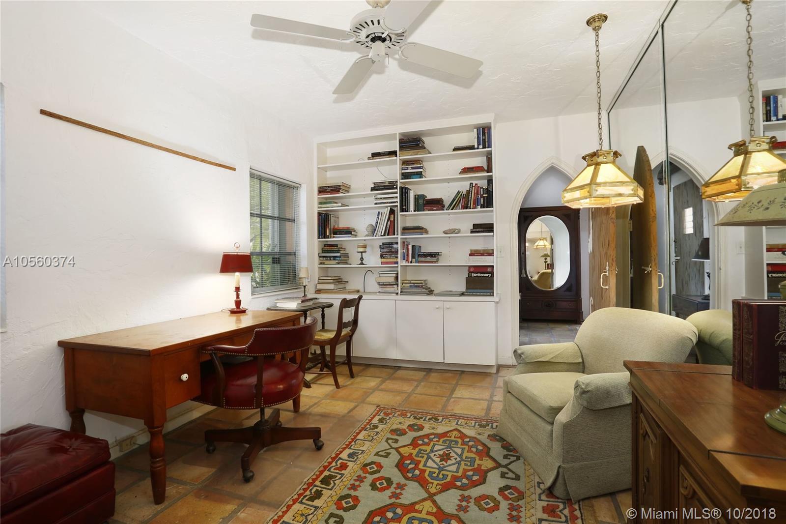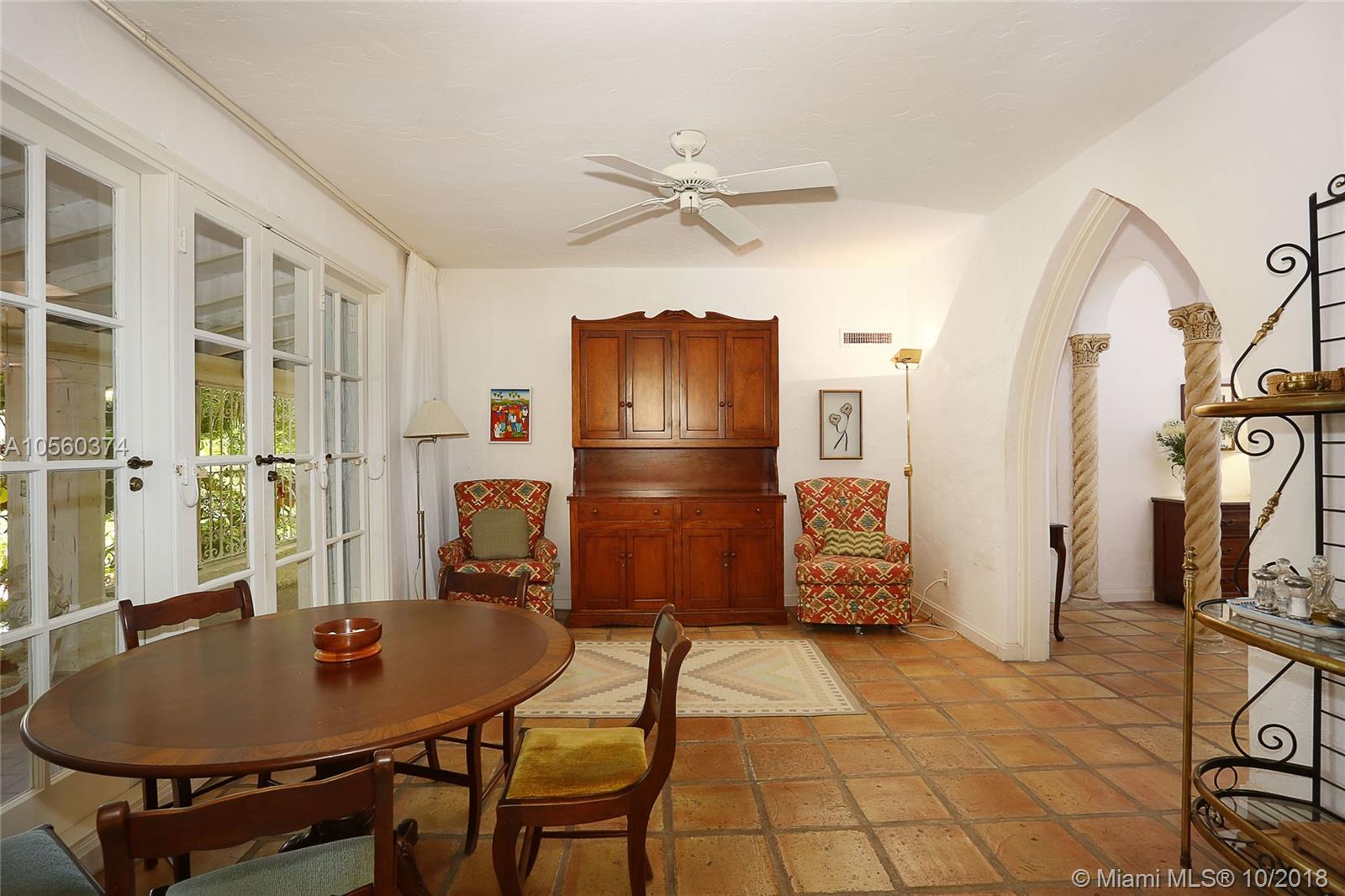 This 3br/3ba home is situated on one of the prettiest Gables streets & just steps from the Granada golf course! It is truly special with Moorish details & arches, 2 story ceiling in the living room, Pecky Cypress front door & ceiling details, working fireplace, open floor plan & split bedroom layout. The newly renovated kitchen opens to a dining area that accesses the screened patio, perfect for grilling or outside dining. The front of the house also enjoys a wonderful vantage from the beautiful patio with cut coral floors & lush landscaping. The home has been lovingly maintained & features a master suite downstairs with one more bedroom or den down, an office & private bedroom upstairs that can be accessed from a side door. Detached garage, laundry room, 2012 roof, & gorgeous details.