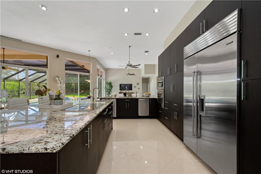 This spectacular remodeled home in Weston Hills has an awesome open layout, 12' ceilings and 32"x32" tile floors. Tremendous gourmet kitchen features high quality custom cabinetry, Sub-Zero refrigerator, Wolf cooktop, granite counters, 2 sinks, 2 dishwashers. Triple split floor plan with the master suite on one side of the home, 3 bedrooms on the back side and a 5th bedroom that can also be used as an office, playroom or guest room. Relax on the outside deck and enjoy the privacy in the heated pool. New roof 2014. Membership in the renowned Weston Hills Country Club is available for purchase and offers golf, tennis, swimming, fitness, social and dining options. Close to A rated schools and a public library, you will find this community to be an ideal location for this ideal home.