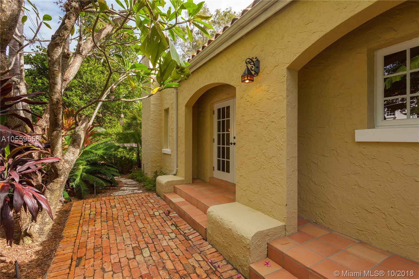 The very definition of "turn-key" this 3/2 "Old Spanish" villa in a top Gables location is in immaculate, move-in condition from top to bottom - just move in and pop the champagne cork! Impact doors & windows, 2 new AC units in 2015, Dec. 2006 roof, 2 bedrooms (1 with its own office) downstairs & a large, 2nd floor master bedroom with large bath, walk-in closet & marvelous sundeck. There is a large foyer leading to a formal living room with fireplace & hardwood floors, formal dining room, newer kitchen with dual-fuel range, granite countertops & a family room with wet-bar, high ceilings & built-in library shelves. Roomy garage with extra storage space. Like a luxury townhouse this home offers elegance, space & A+ condition with vintage charm and a lovely, low maintenance garden space.