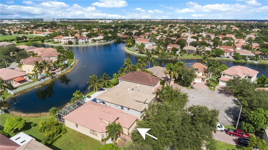 Charming "Monarch Lakes" home with a stunning lakefront view in the gated subdivision of "Portofino South". Meticulously maintained and ready for its future owner. Spacious master bedroom with generous sized walk-in closet and bathroom. Great distribution of space with a kitchen that opens out to a family room overlooking a beautiful lake. Great lighting throughout. High ceilings, well distributed lot, great community amenities and located within minutes of retail, restaurants & expressway access.
