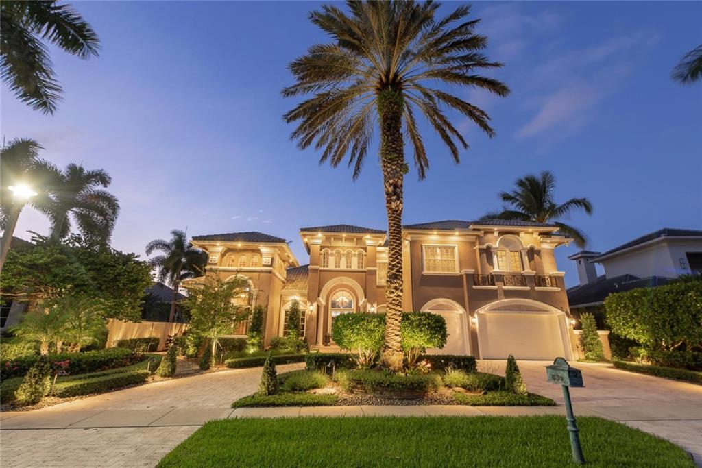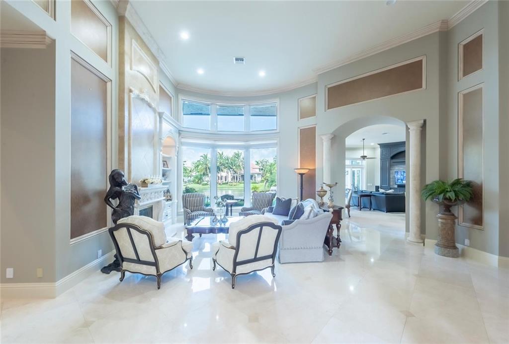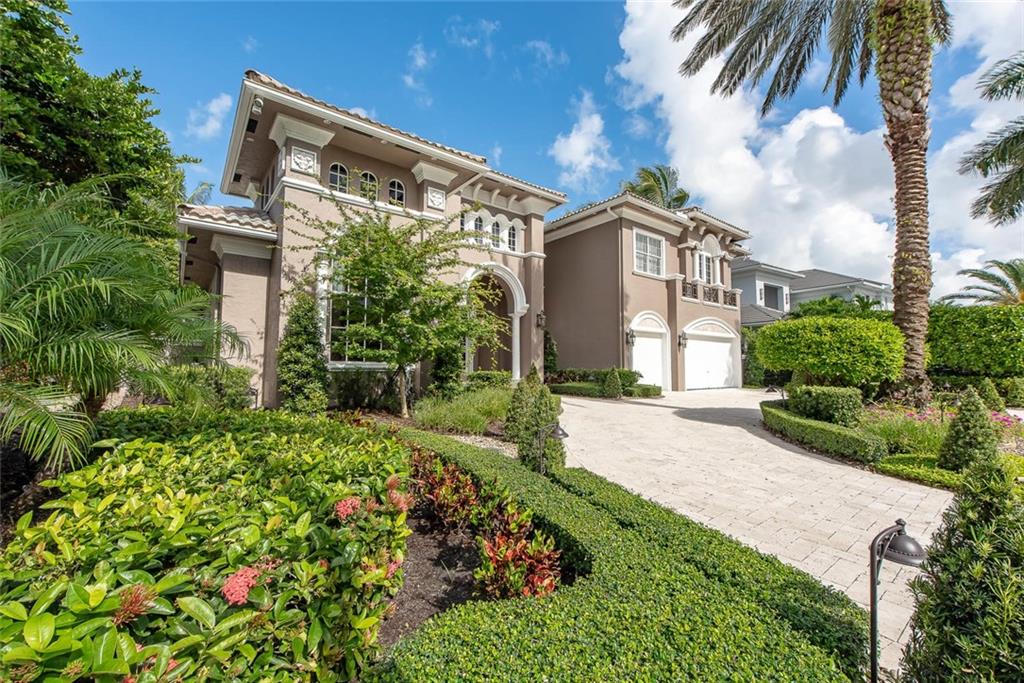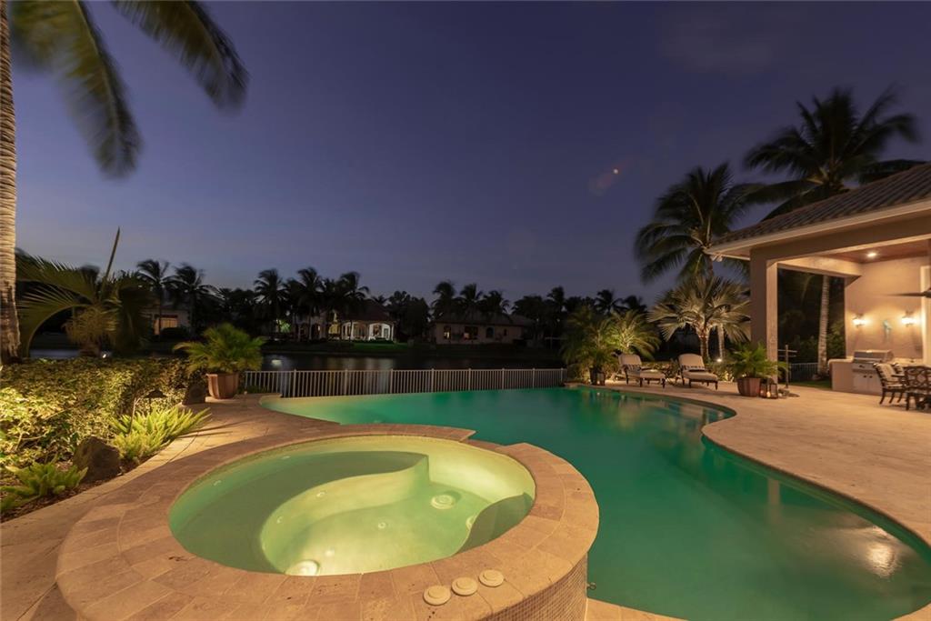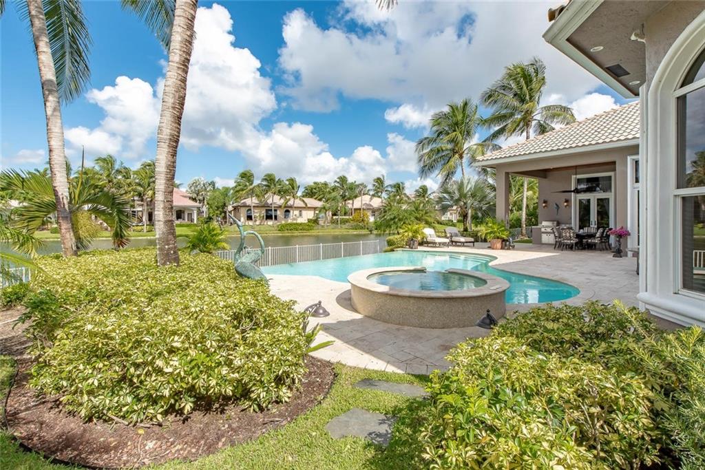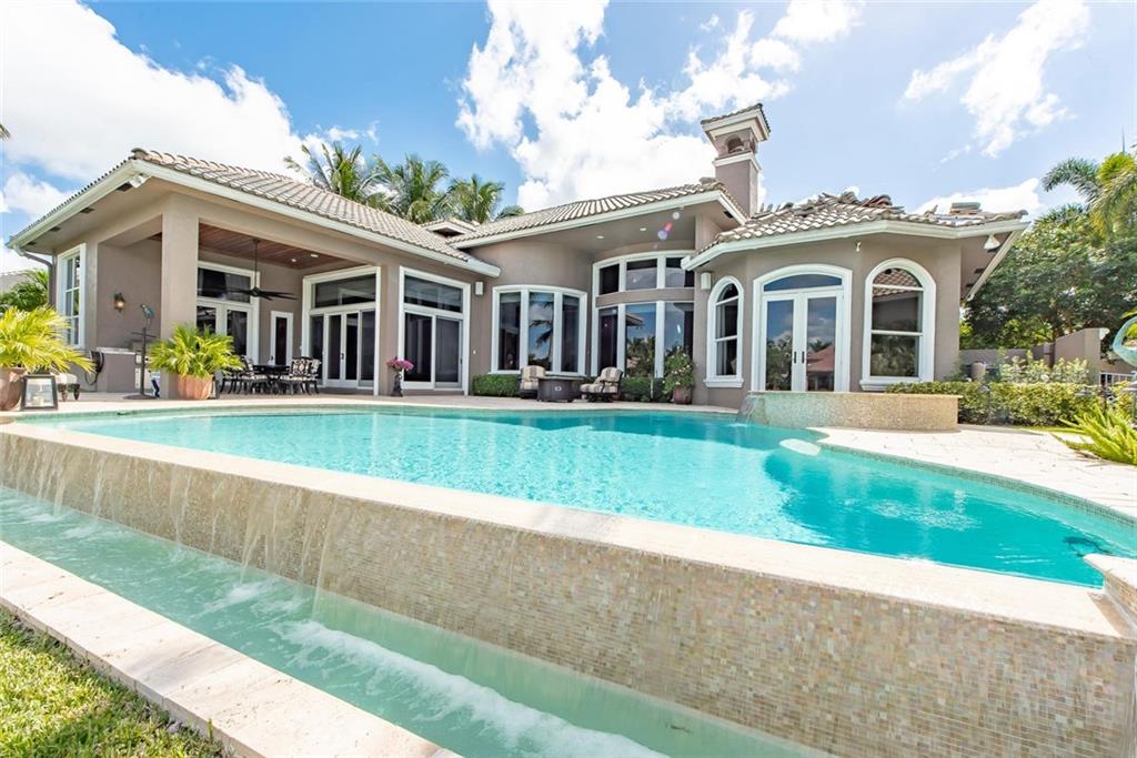 Prestigious gated community Hawks Landing located on cul-de-sac in prime "Inner Loop" location. Former showcase model. Upgrades galore, 6 bed/ 6 1/2 baths plus office & summer kitchen, covered patio, playroom/loft, vanishing edge pool overlooking wide water view, fireplace, imported marble, exotic harwoods. Impact glass.