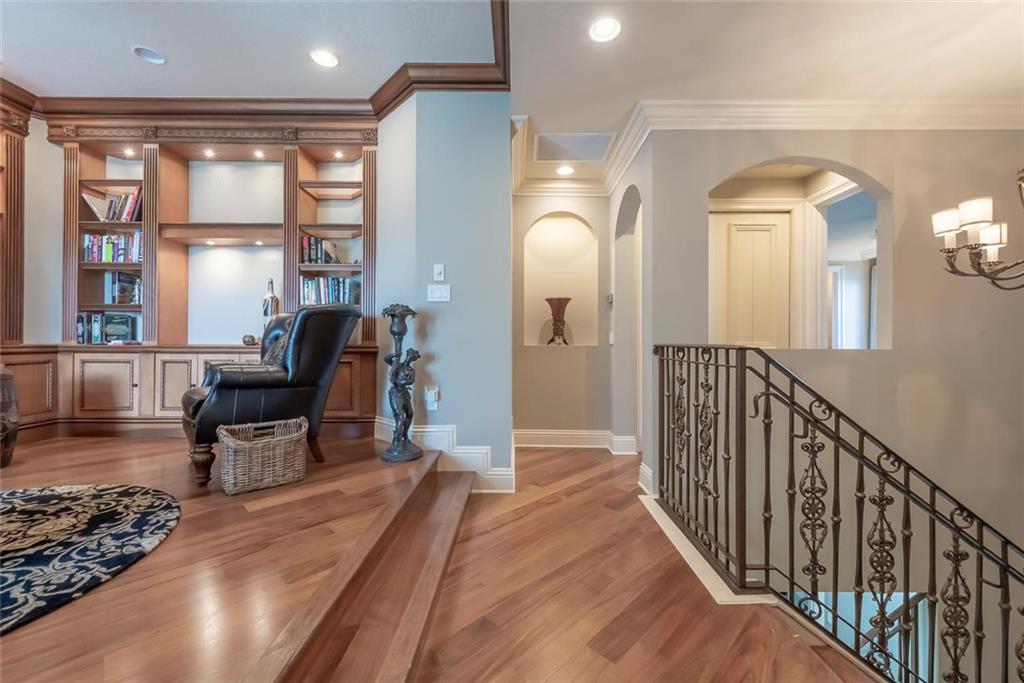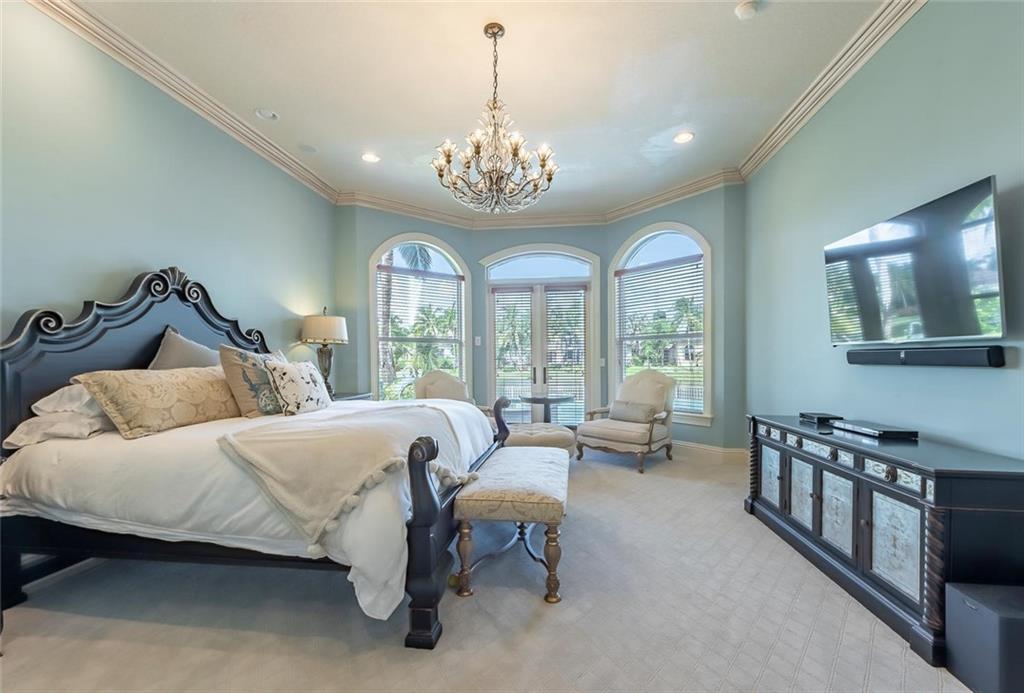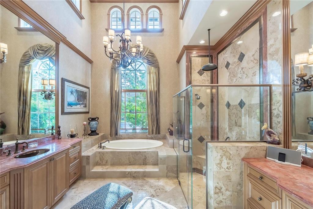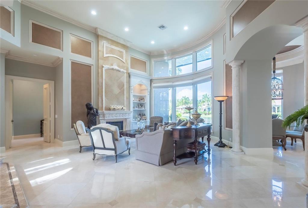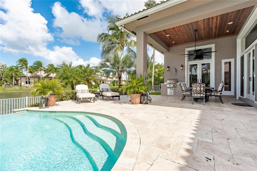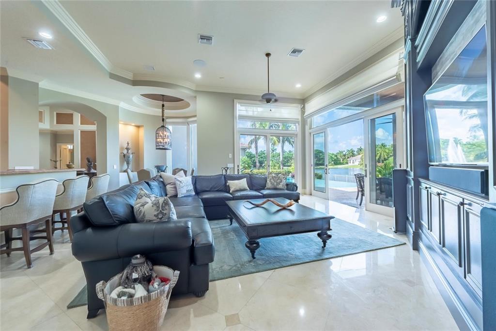 Prestigious gated community Hawks Landing located on cul-de-sac in prime "Inner Loop" location. Former showcase model. Upgrades galore, 6 bed/ 6 1/2 baths plus office & summer kitchen, covered patio, playroom/loft, vanishing edge pool overlooking wide water view, fireplace, imported marble, exotic harwoods. Impact glass.