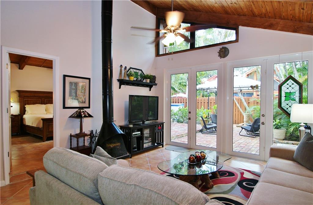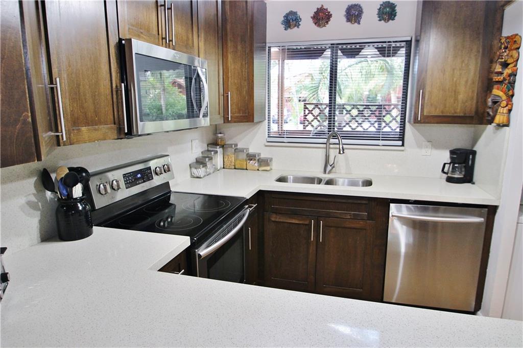 A Great opportunity to own a Beautifully Updated Home in The Lofts. Upon stepping into this unique property you are immediately taken over by the wide open Floor Plan and Natural Bright Light flowing through the huge 2 story wall of Glass & French Doors. Overhead the high Vaulted Wood Ceilings create a very warm and Inviting feeling. Open Living / Dining / Kitchen concept are a perfect setting for entertaining Friends & Family. Over sized Living Room overlooks a Tranquil & Serene, Chicago Bricked, Private, Fenced Courtyard. Additional Property features include Brand New Kitchen, Stainless Steel Appliances & Quartz Counters/All New Impact Windows & Doors/Tile floors through-out/Updated Bathrooms/Fixtures/Lighting... Charming front Porch overlooks the Oak Tree Lined Cul-De-Sac street.