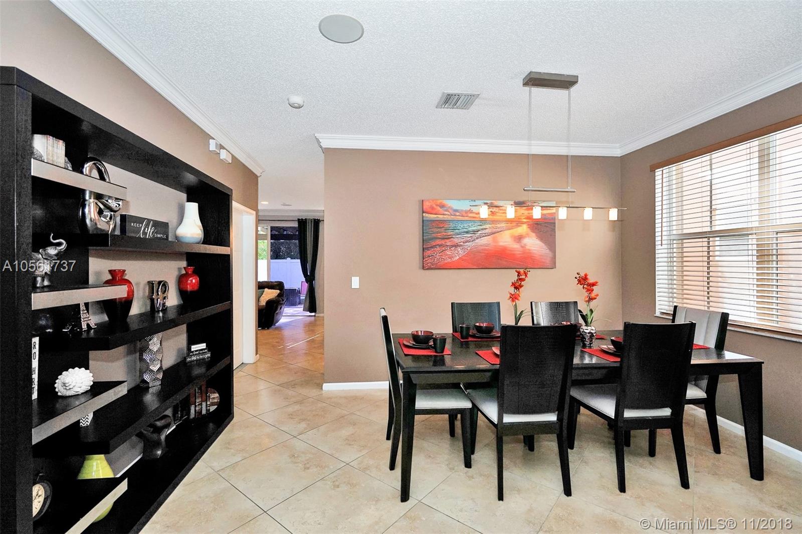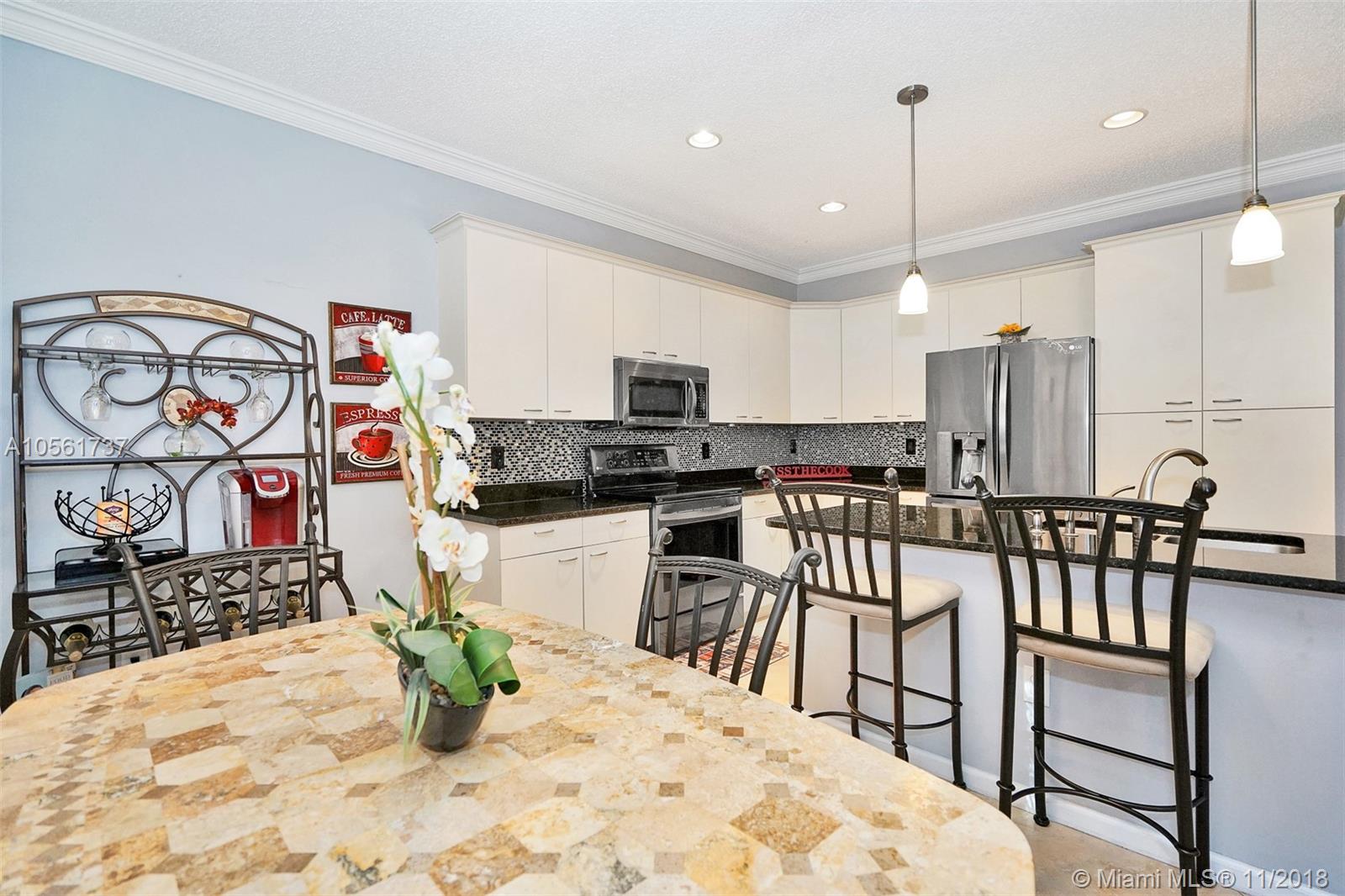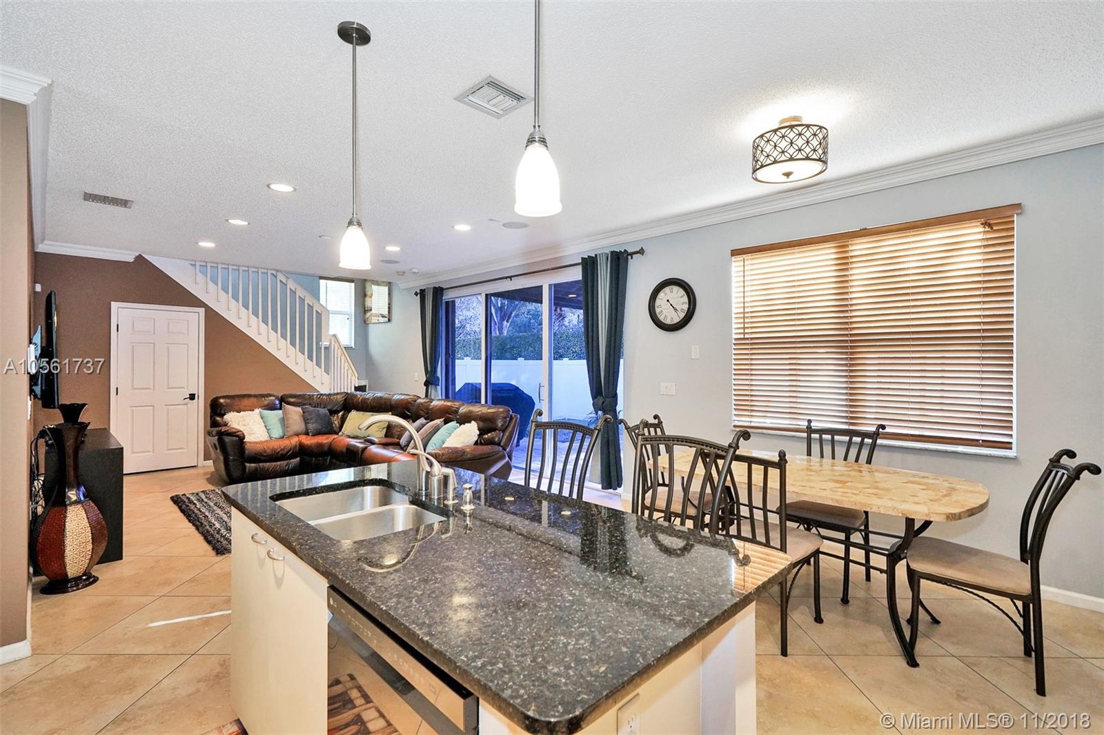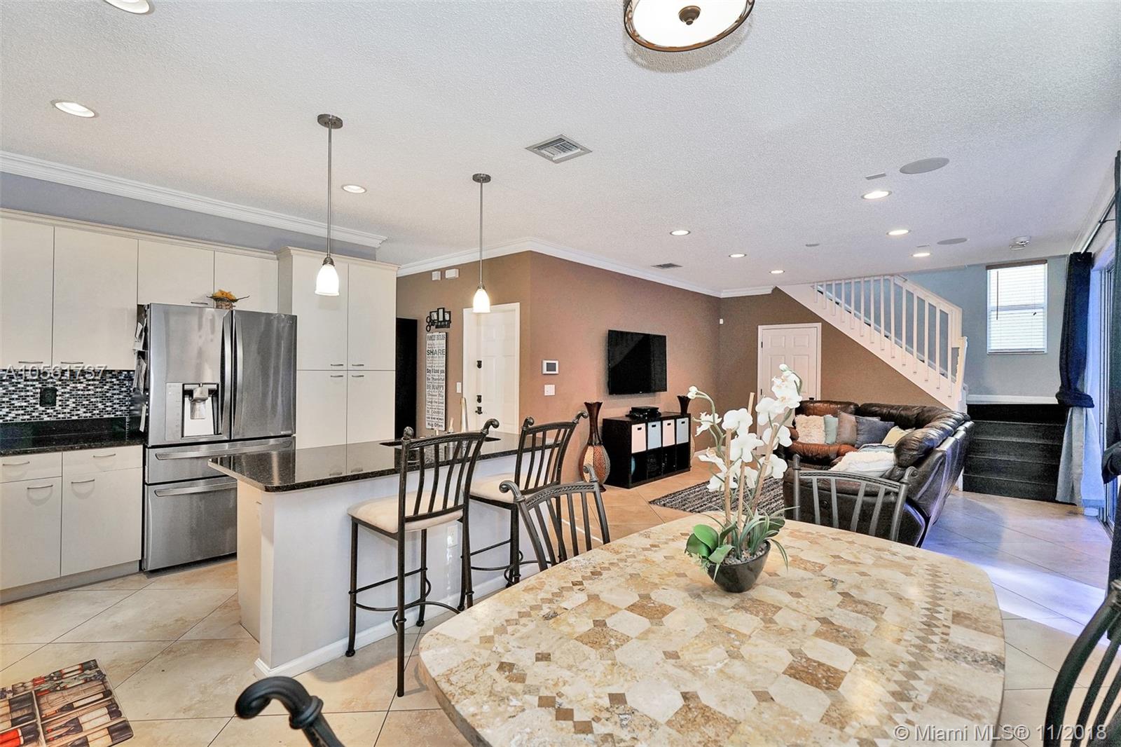 Beautifully maintained & move in ready 4bed/2.5bath home located in the desirable gated community of Riviera Isles. Features include formal living & dining room, newer AC, granite countertops, 2018 new stainless steel appliances, kitchen island, crown molding throughout, surround sound, sprinkler system, alarm with cameras, 24in tile downstairs, dark laminate wood floors upstairs, large master walk in closet, master bath w/ double sinks, tub/shower combo, separate toilet, front load washer & dryer upstairs, new landscaping, covered patio, nice size privacy fenced yard & hurricane shutters. Community features include secured guard gate, clubhouse, gym, resort style pool, basketball & tennis courts. Great school zones & conveniently located close to 1-75, shopping and restaurants.