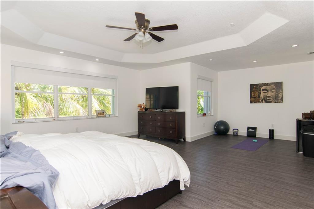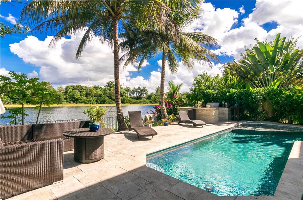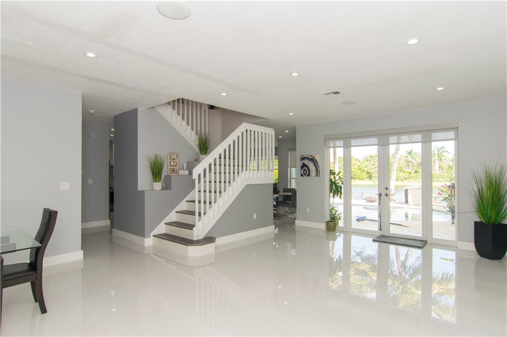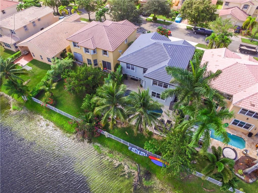 Excellent Opportunity. Priced to sell 5 Bdr 3 FBth Single Family Home with Pool and Waterfront view. High Quality Features and Modern Upgrades. Kitchen white large soft-closing cabinets, Quarz waterfall-countertop, SS Appliances and wine cooler. Porcelain Flooring first floor, and new water proof laminated flooring upstairs. New Roof 2018. Impact French doors and new accordion shutters. New AC units. Salinated pool with pebble tech finish and new pump and filter. Travertine flooring in the pool area/ backyard. Entire house wired with speakers for a sound system (Receiver not included). Whole house with Led Lights and dimmer switches. New garage motor openers. Stylish Stonewall in the Family Room. New paint interior and exterior. HOA includes Cable & Internet.