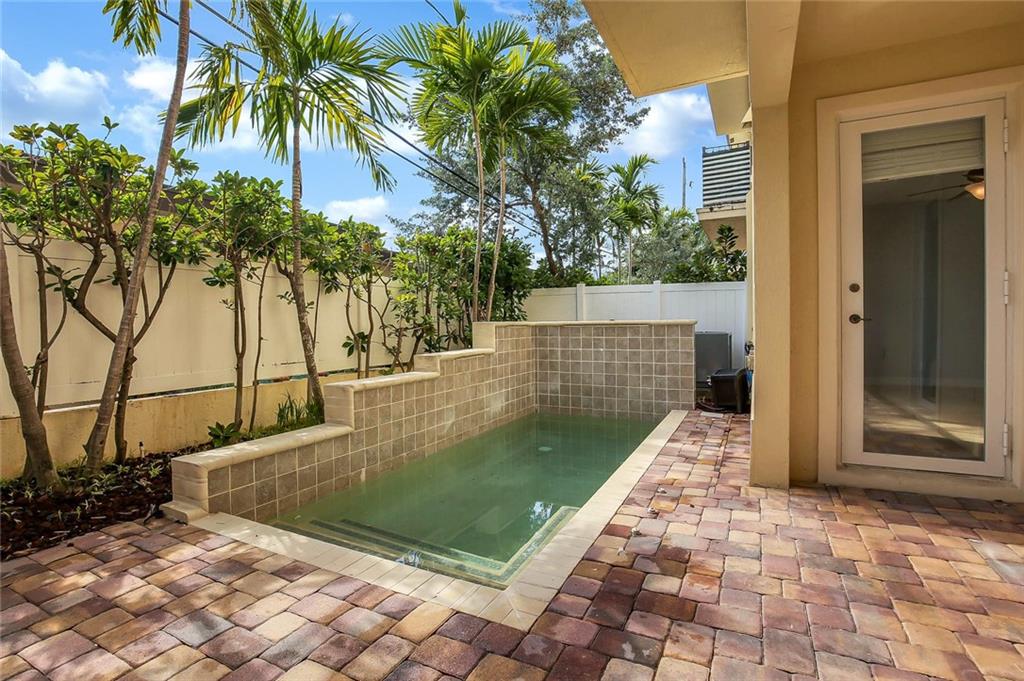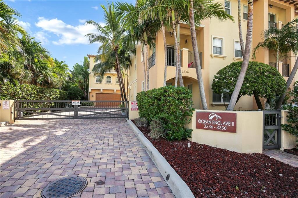 Beautiful Townhouse just West of A1A (easily walk to the beach and the Marriott Hotel) with very secure entry gate! Southern rear exposure with tropical fenced garden area and rear deck. Private heated pool with water feature. Large two car garage with a 220 volt charging station for electric or hybrid vehicles. The first floor welcomes you with a foyer entrance, elevator and large private en suite bedroom. The second floor features the great room, dining area over looking a spacious balcony, eat in kitchen, powder room and laundry. Beautiful marble adorns this floor. The third floor has the master suite with Southern views and two other bedrooms (one with a balcony overlooking the motor court). This is a must see unit with exceptional location and value!