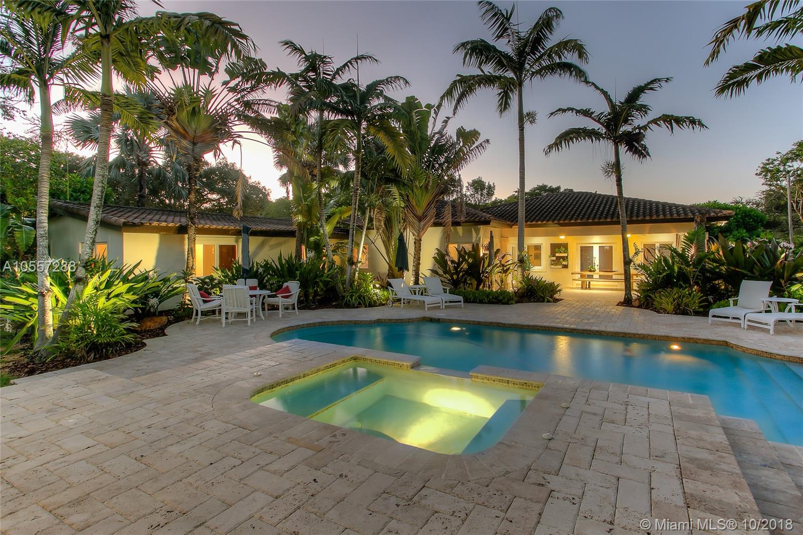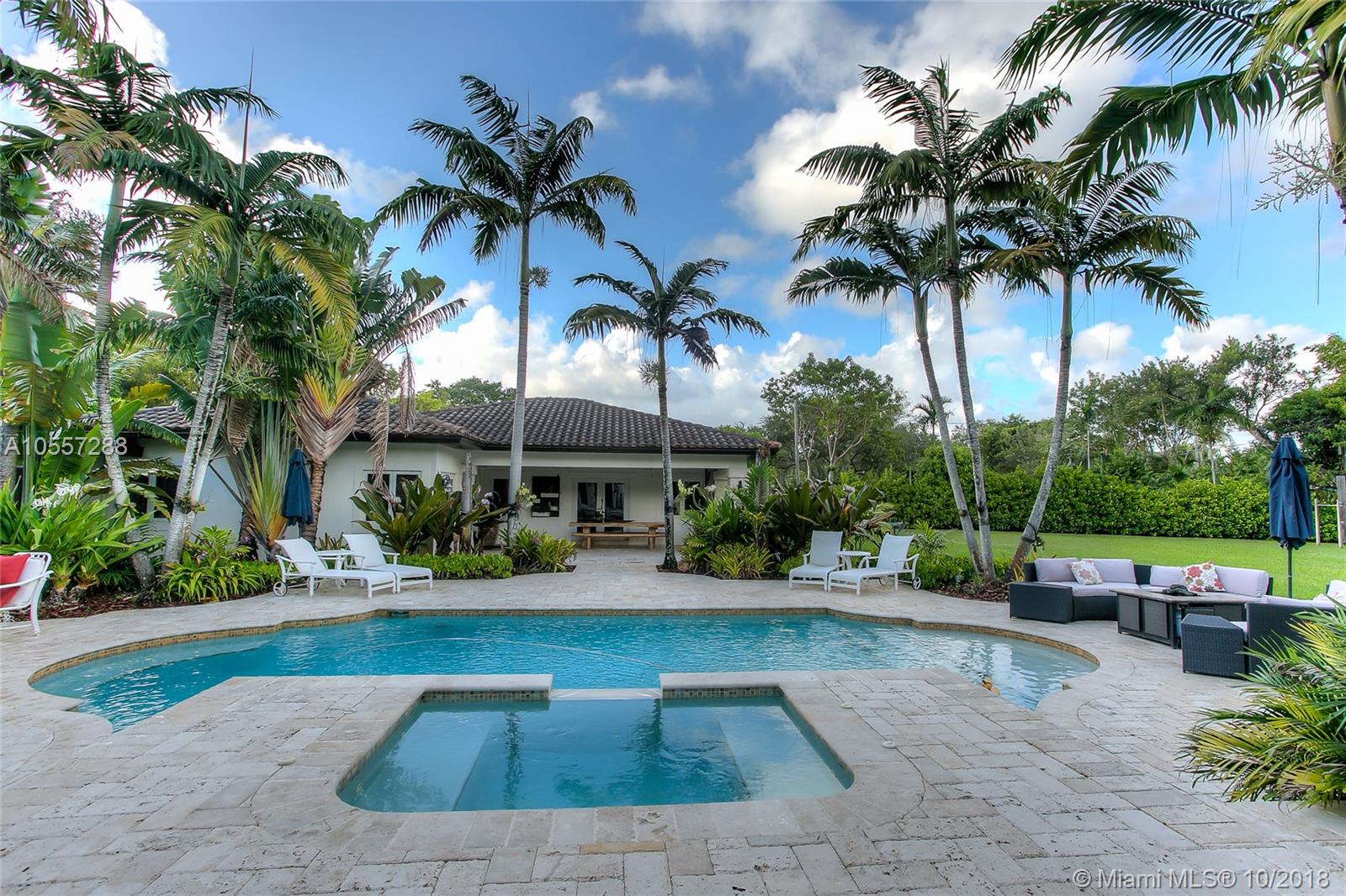 Live your best life in this gated one acre estate in Pinecrest! Updated plumbing and electrical, marvelous grounds, tropical pool with jacuzzi, guest house with full cabana bath. An amazing magazine worthy interior with luxurious millwork, volume ceilings, 24x48 marble floors throughout, solid oak white-wash wood floors in all bedrooms, impact windows/doors, 5-star Gourmet kitchen with top of the line appliances, sophisticated bar & wine cellar with well appointed finishes. Office/media room with exquiste millwork. Lavish master suite with his/hers closets and expansive master bath with steam shower, all bedrooms are light & bright, split plan with a 2nd master suite, updated baths. Fireplace, utility room with plenty of storage, Generator, 3 car carport, 2 sheds. Great schools & street.