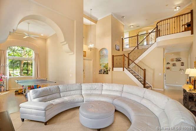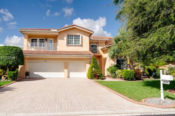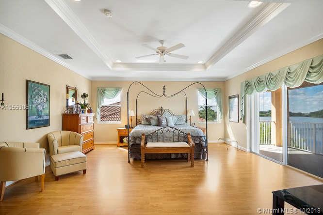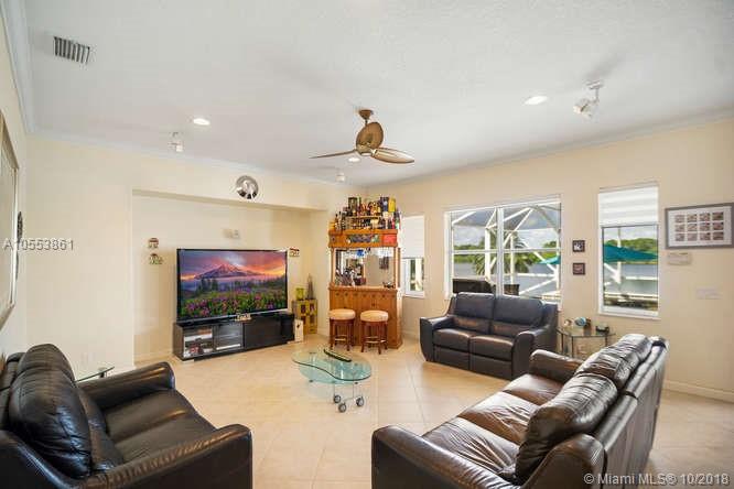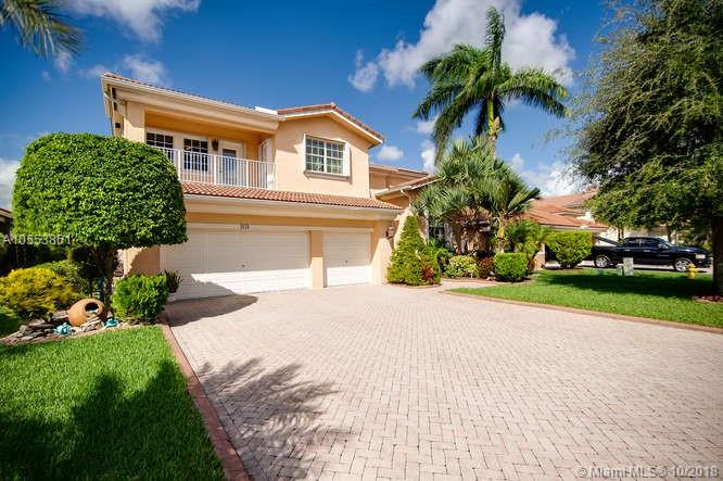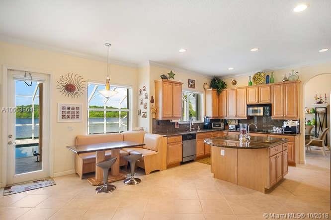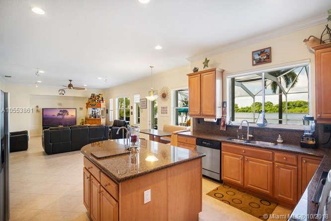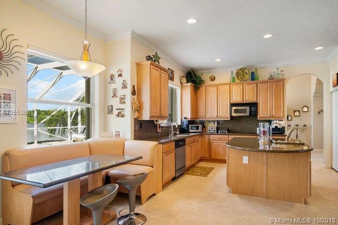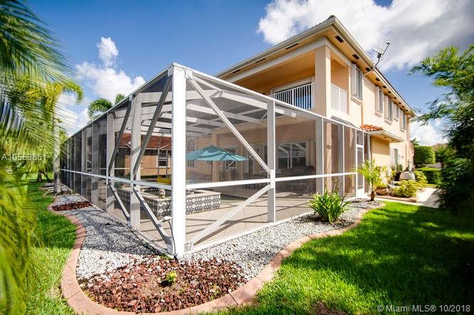 Magnificent views and sunsets! 2 story home with an amazing screened pool overlooking the lake. 5 bedroom, plus game/office room, 3.5 bath, California closets. 3 car garage, spacious open kitchen with center island, granite counters, wood cabinets and stainless steel appliances with a double oven, dinette area. Tiled floors throughout the living areas, wood laminate in bedrooms and the wood winding staircase, accordion hurricane shutters. Top rated schools, low HOA that includes security alarm monitoring. ***See broker remarks***