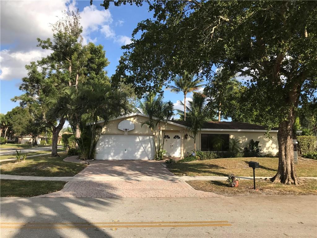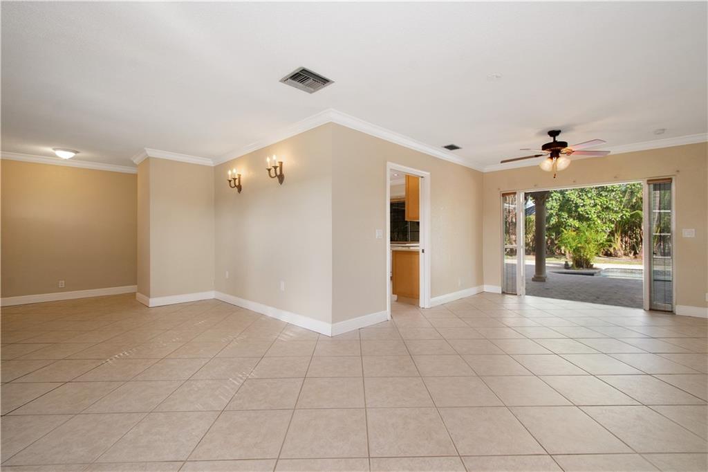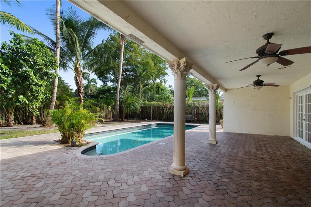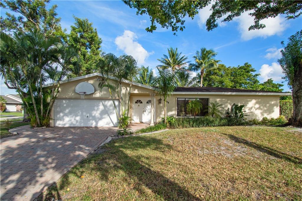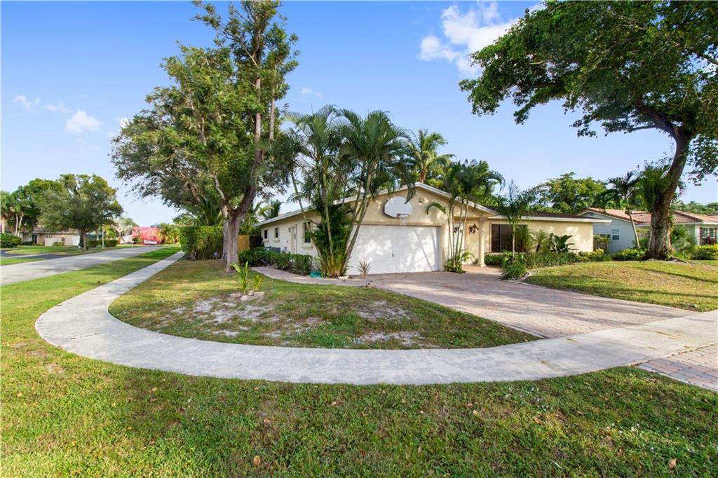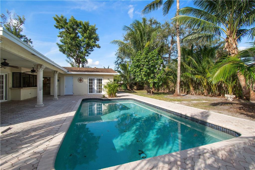 Corner lot home in quiet neighborhood. 4 Bedroom 2 Bath split floor plan home. French doors surround the pool area. Large fenced in tropical backyard with swimming pool and patio. Open kitchen with large windows thru to covered patio for entertaining. 2 car garage with attic storage.
