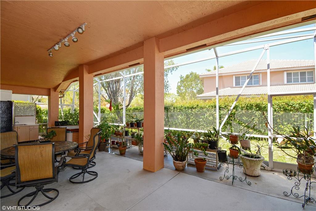 Great family home in the heart of Weston. One story 3 bedroom 2.5 baths with separate office/library. This home boasts of an open concept with high ceilings, crown molding, front porch and nice curb appeal. Newer kitchen is spacious with granite countertops, a separate breakfast area, built-in bar, a desk and plenty of cabinet space. Large kitchen island provides extra eating space. There is an oversize covered and screened in back patio/porch for extra outdoor living space perfect for entertaining. Master bedroom has also high ceilings with organized closet space. Separate laundry area leads to two car garage with plenty of storage space.