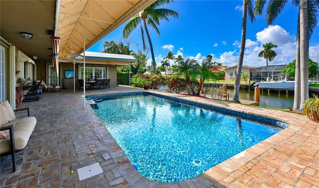 GREAT HOME WITH GREAT CURB APPEAL,AT THE END OF THE CUL-DE-SAC, THIS HOME HAS A SPLIT FLOOR PLAN, NEW APPLIANCES (NEW SUB ZERO REFRIGERATOR AND DISHWASHER, GOURMET KITCHEN, GREAT FAMILY ROOM AREA, THE GARAGE HAD BEEN CONVERTED TO A LARGE FAMILY ROOM BUT CAN BE CONVERTED BACK TO A 2 CAR GARAGE., 2 ZONES OF AC, HURRICANE SHUTTERS FOR THE HOUSE, POOL. THE WATER HEATER, GAS STOVE AND DRYER IS ON NATURAL GAS. 115 FT ON H2O, NEW DOCK AND UPDATED SEAWALL, GREAT LOCATION.
