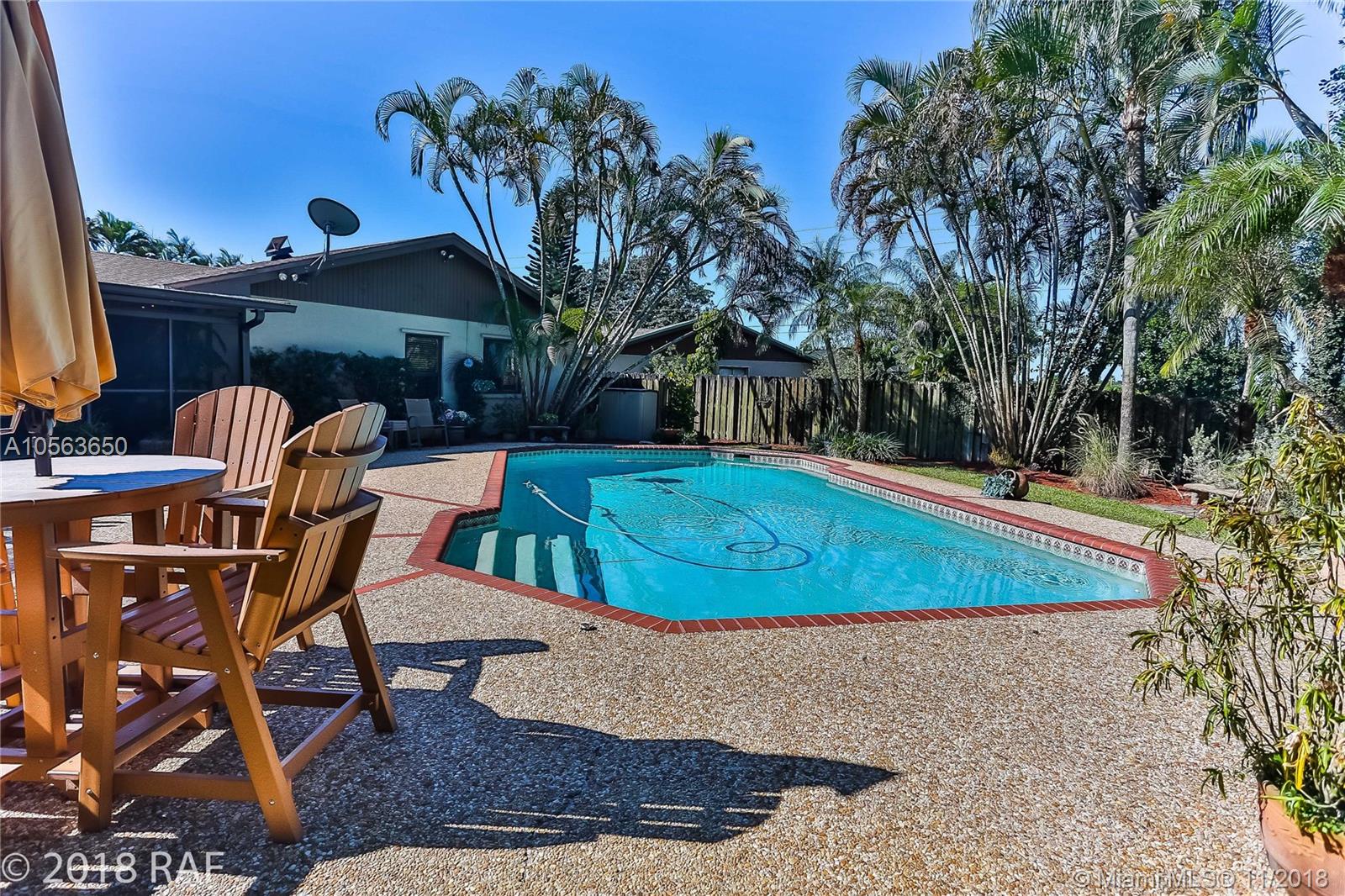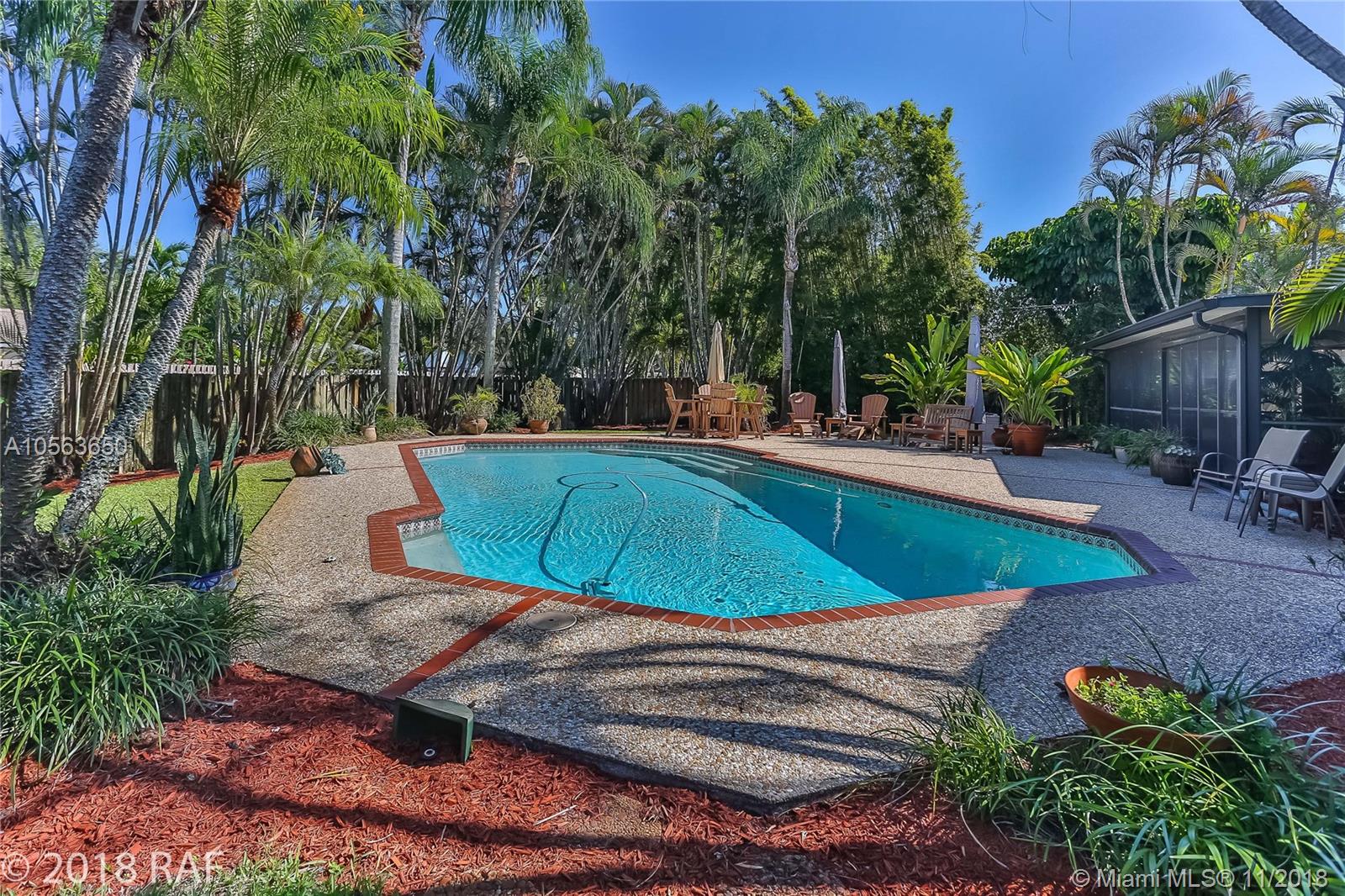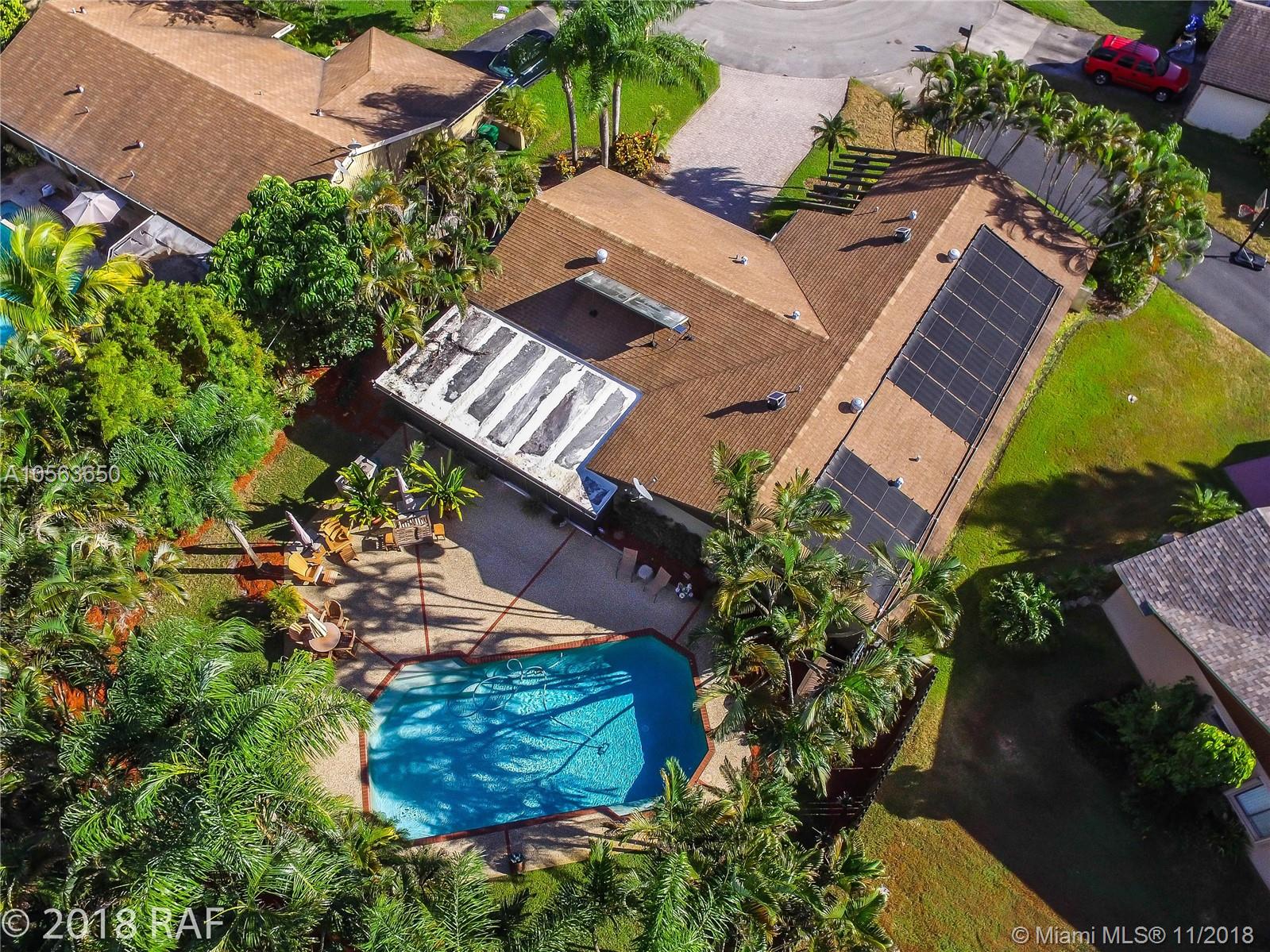 Beautifully remodeled 3 bedroom ranch w/ large 16x32 solar heated, salt system pool & huge covered screened patio, set on an over sized cul-de-sac lot. Loaded with hi-end designer features including all newly renovated bathrooms and hard wood flooring in family room, dining room, kitchen & hallways. Roof replaced after hurricane Wilma. New washer and dryer are less than 1 year old. You'll feel secure during storms with all new hurricane impact windows and doors PLUS a full set of hurricane panels should you feel the need for extra protection. Electric bills are kept very low thanks to the solar hot water heater, insulating impact windows & solar powered attic fans. **LISTING PHOTOGRAPHS ARE COPYRIGHT PROTECTED. UNAUTHORIZED USE IS PROHIBITED**