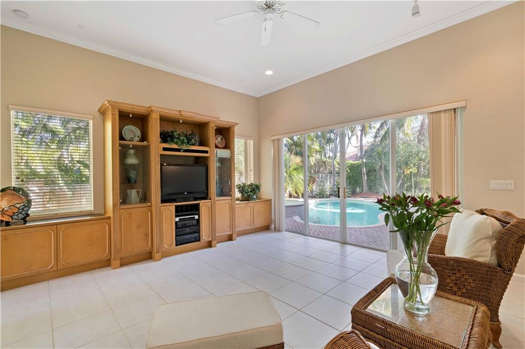 This beautifully maintained home is located in one of Coral Springs most sought after gated communities! Features include a foyer entrance, formal living & dining rooms, family room, breakfast area, office (5th bedroom), a built-in home learning & entertainment center, 18" tile flooring & crown molding throughout, tray ceilings, recessed lighting, new satin nickel door handles, maple kitchen cabinets, center island, double ovens, granite countertops, a huge master suite with sitting area, his & her baths, bidet, roman tub and fresh paint inside & outside! Other features include the heated pool & spa, accordion hurricane shutters, newer hot water heater, Generac Home Generator, a private side yard putting green and the tropically landscaped corner lot! South Florida Living at it's best!