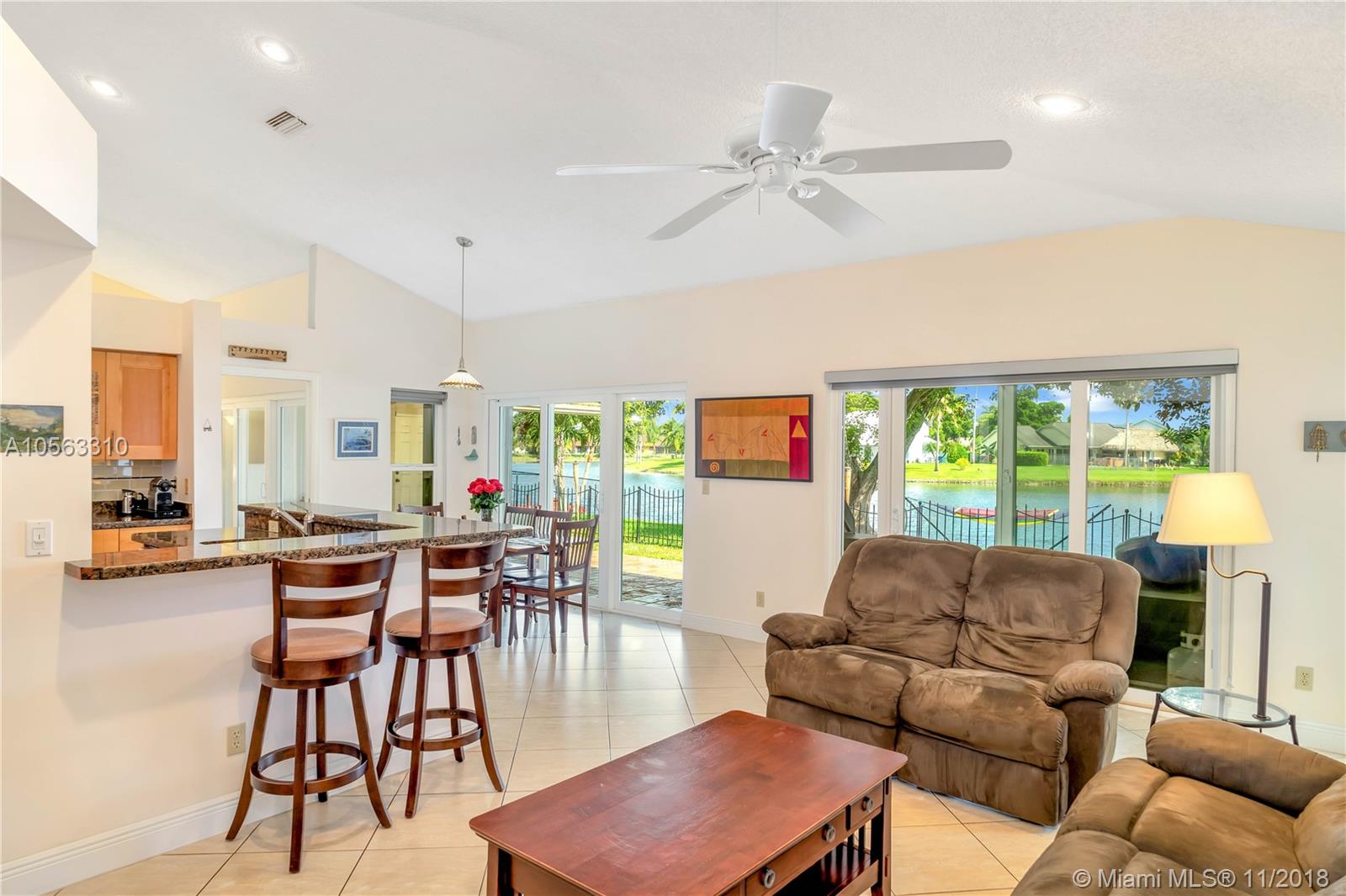 Stunning lake views! Walk to Pioneer Middle and Cooper City High. Updated 4BR/2BA home has new windows and doors (impact in the master) and accordion shutters protect the rest of the home. Eat-in kitchen opens to the family room and also has granite counters which form a large breakfast bar over 2 sides. Light and airy home has an additional open living room/dining/great room. Volume ceilings surpass the walls in the entire living space to create open air flow. Indoor laundry room, new washer/dryer. 2 renovated baths each with double vanities. Formal dining room could easily be converted to 5th bedroom. Sprinklers run on lake water and owner has reinforced the bulkhead in front of their home. Bedroom dimensions do not include closet space. Large lot--plenty of room for a pool!