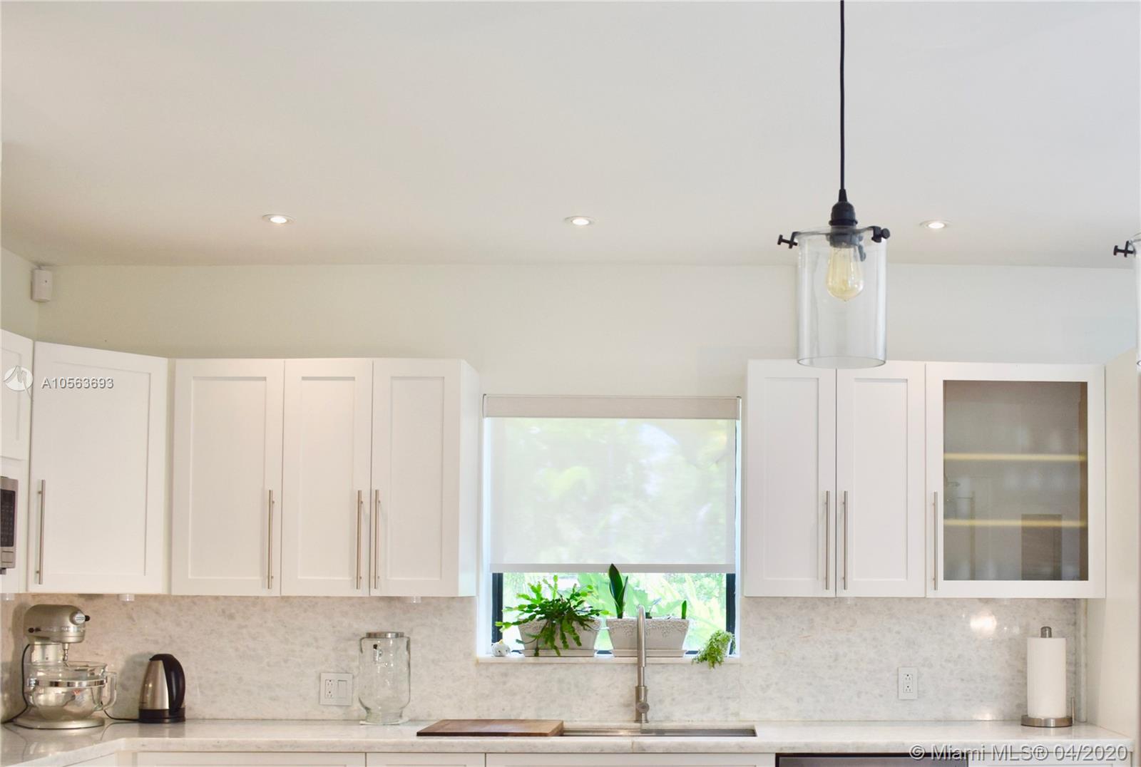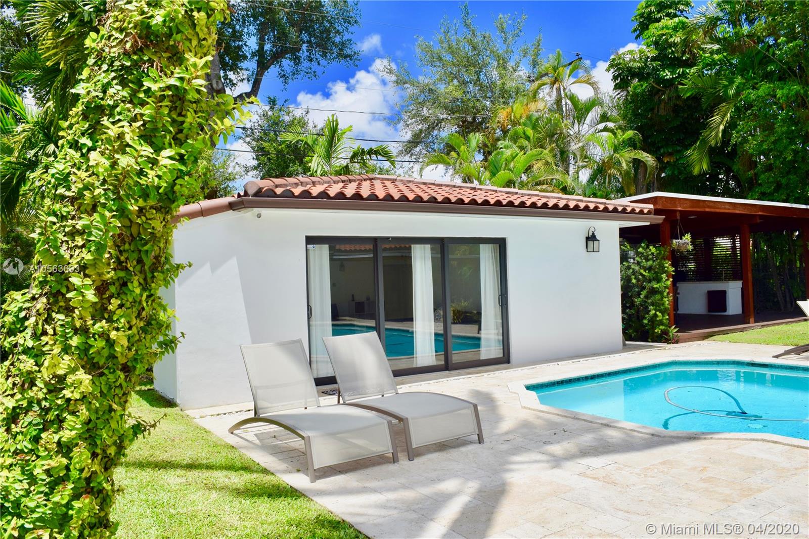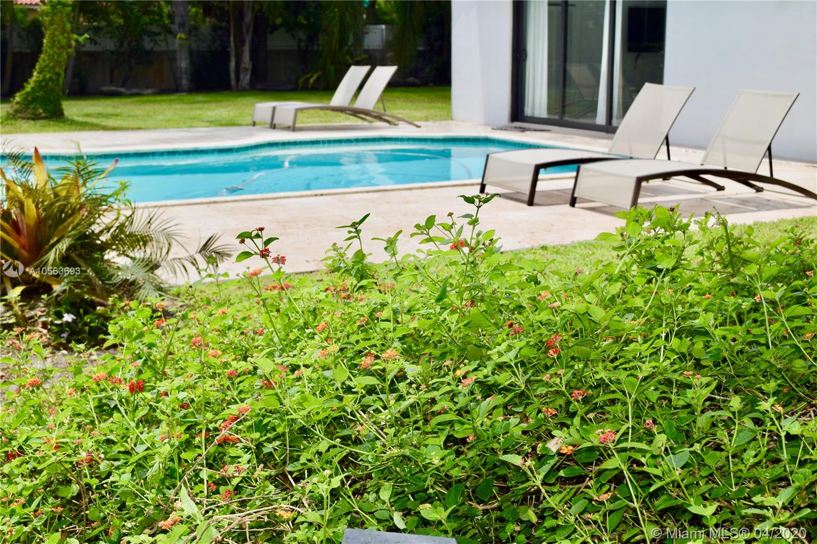 NEW PRICE REDUCTION. Open floor plan with beautiful back yard on 14,000 sqf corner lot. Impeccably 2015 renovated, State-of-the-Art 3 bedrooms, built-in closets with lights, 2 bathrooms with glass doors showers, separated guest house 4th bedroom with closet & full bathroom. Outside covered entertainment area &BBQ, POOL, 1 car covered parking garage with direct kitchen door access. Marble & engineered wood floors, Professional Gourmet Italian Kitchen, quartz countertops, KitchenAid appliances, 6 gas stoves, 2 ovens, best impact windows & panoramic sliding doors available to integrate the outside entertaining area with your inside social areas, new 2015 A/C, 7 sec. camera system, alarm & automatic programed lawn sprinklers. Move-in condition.