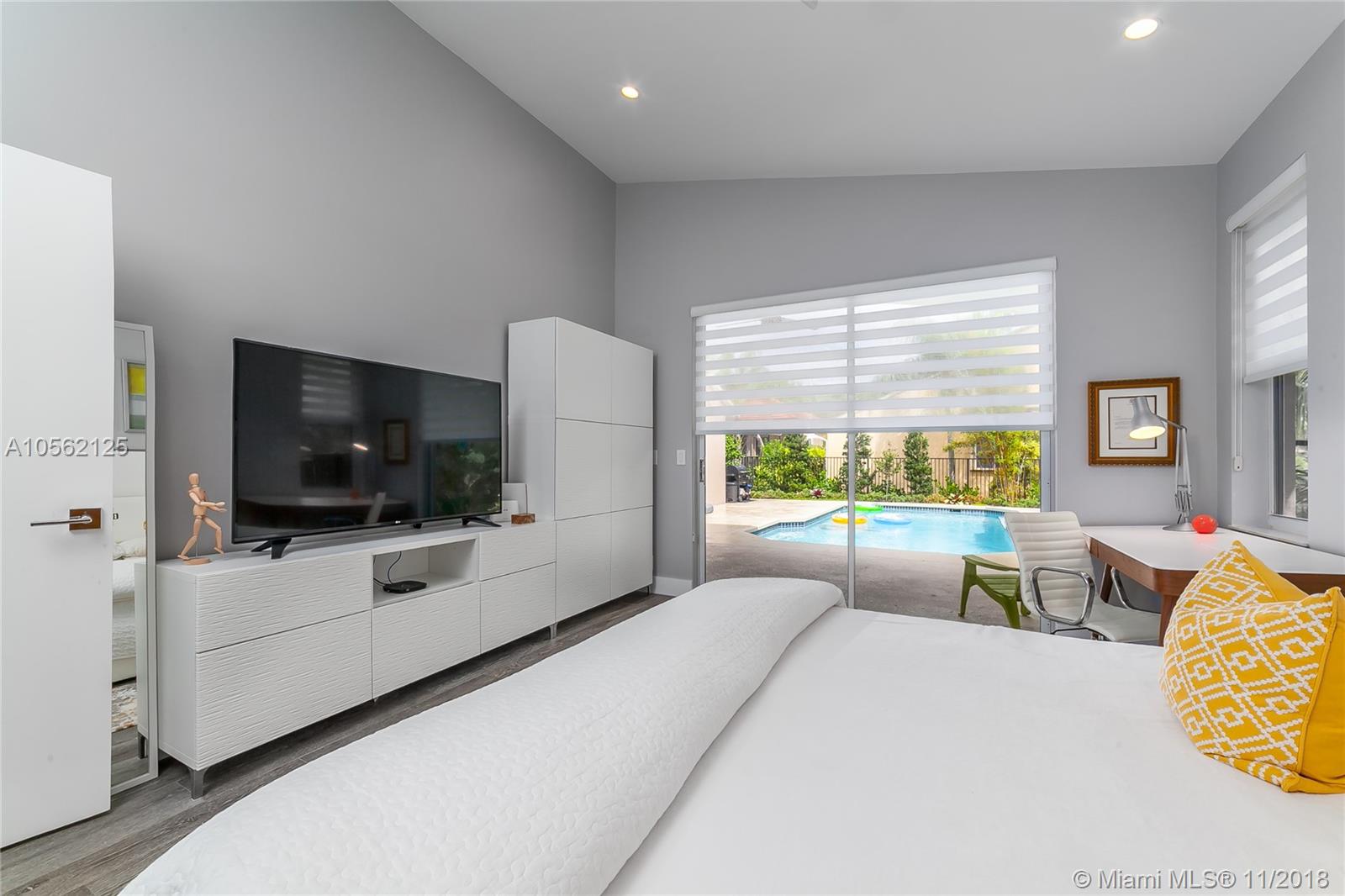 Featured on "Houzz", This 4/3 Totally Designer Remodeled Weston Hills Beauty, is Highlighted Immediately upon Entering with Gorgeous Tiled "Wood Look" Flooring throughout. Eye-Popping Suspended Light Fixtures by Foscarini/Italy make quite the Impact over the Natural Marble Island and High Gloss White Cabinetry in the New Kitchen. The Dining and Living Areas Flow Beautifully, Showcasing the Stunning Accent Wall of Quartzite. Any Buyer would delight in the Modern Serene Vibe of the Master Bedrm/ Bath and Bedrooms. White, Bright, Inviting. Top of the line Roller Shades are Just a Mention of the Numerous Highlights of this Home. Great Pool Area, Perfect for Entertaining and Relaxation.Welcome Pickiest Buyers-- A+ Schools and Terrific Neighborhood.