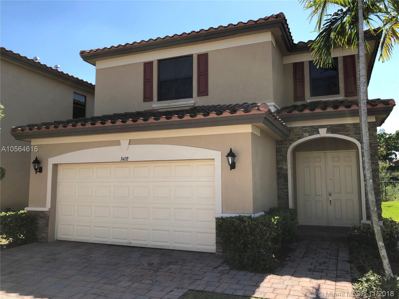 Best priced home at Aragon, a Resort style gated community with 24/7 security. This cozy home features open and bright spaces, a spacious kitchen with granite countertops, stainless steel appliances, a comforting garden view and a guest bathroom in its ground floor. The 3 bedrooms and 2 baths along with the laundry room are located on the second floor. The oversized master has 2 walking closets and a massive master bath with double sink and separate tub and shower. Enjoy the Miami lifestyle grilling in your backyard or at the community amenities: pool, spa, fitness center or the kids playground. All this beauty near A+ schools and easy access to major roads and highways.