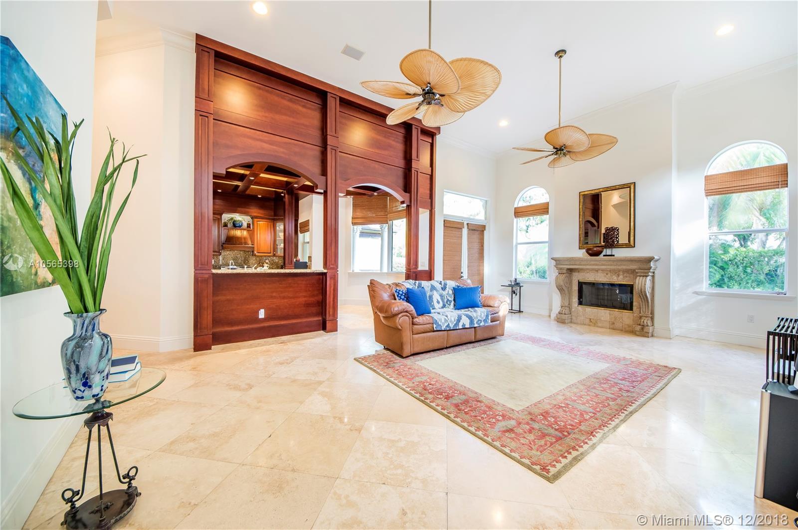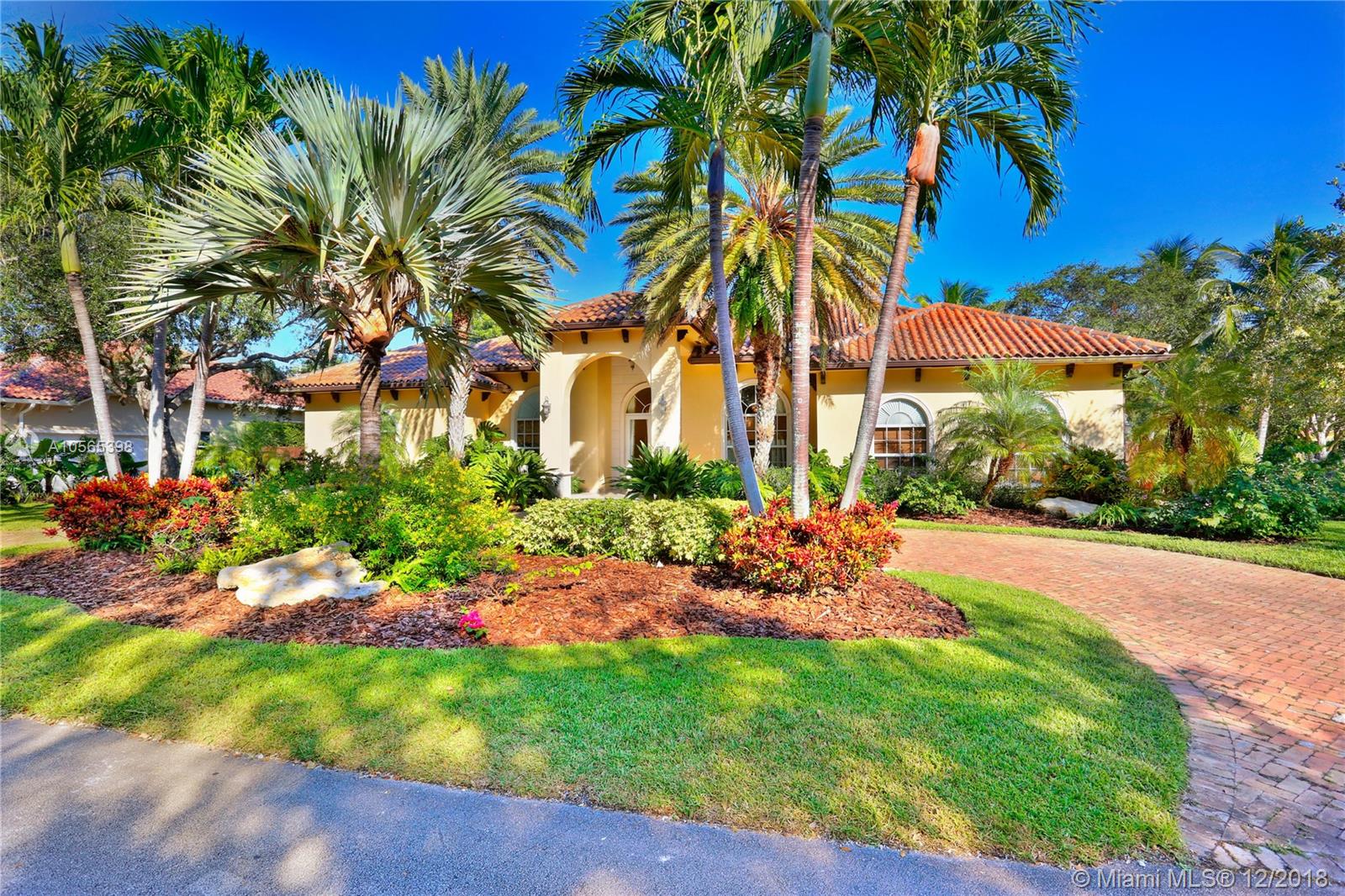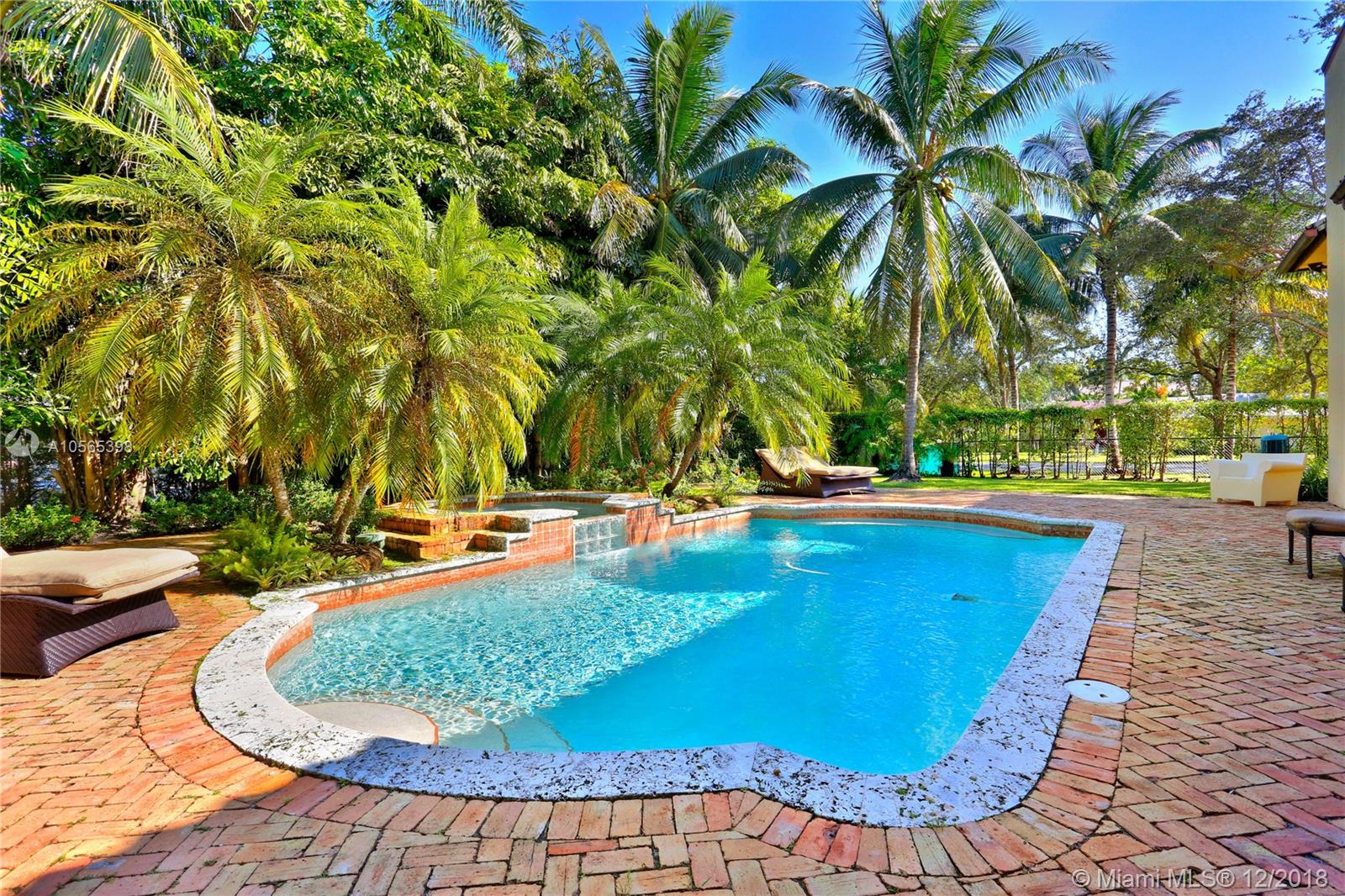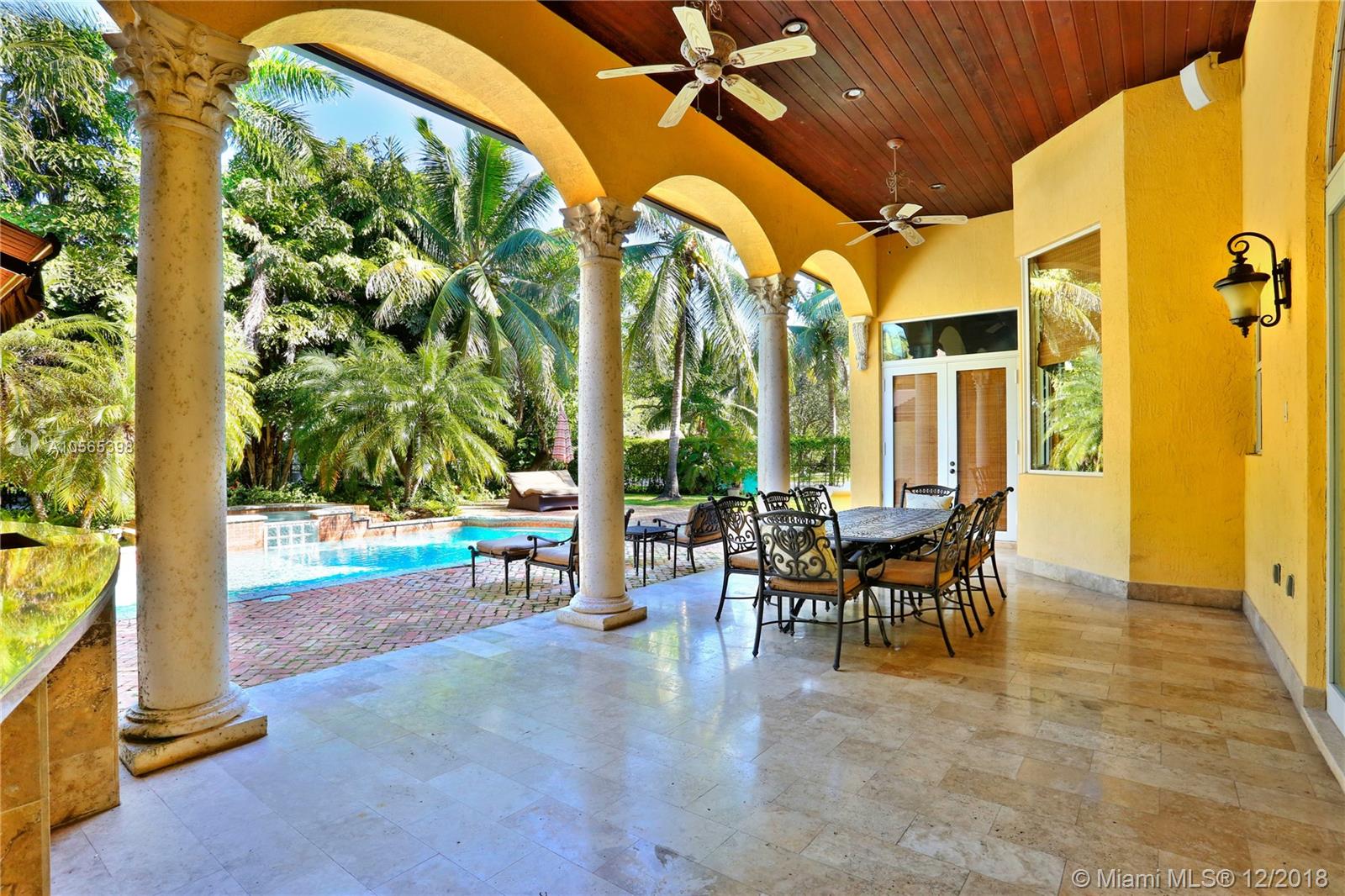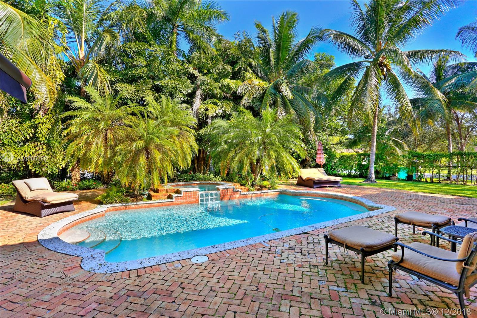 Perfectly Positioned on a Lushly Landscaped Corner lot sits this 2002 Built North Pinecrest Home! Spacious and Elegant floorplan, large open entertaining areas with high ceilings, formal living, and dining rooms, Kitchen cabinetry and millwork is very custom with great detail and high-end Viking appliances, Open Family room concept, Impact windows, fireplace, sleek marble master bath, marble and Brazilian Cherrywood floors, updated baths. House opens to a large covered terrace with outdoor bar area with built-in refrigerator, Chicago Brick patio and pool/spa perfect for entertaining.