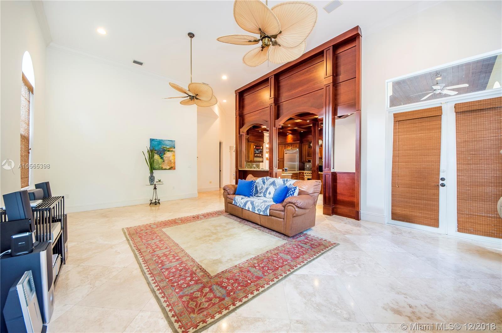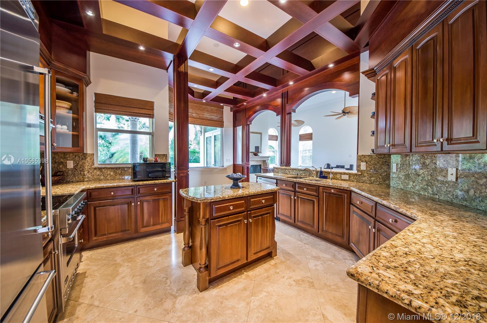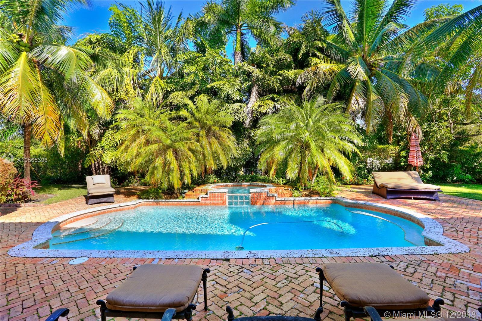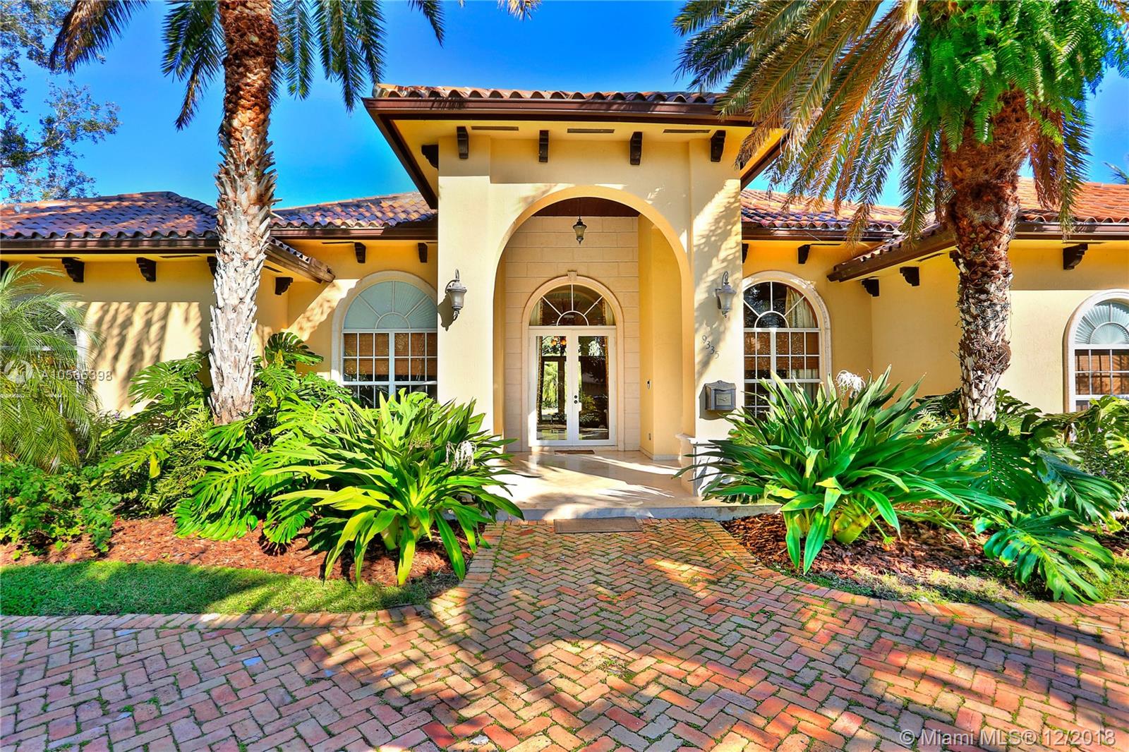 Perfectly Positioned on a Lushly Landscaped Corner lot sits this 2002 Built North Pinecrest Home! Spacious and Elegant floorplan, large open entertaining areas with high ceilings, formal living, and dining rooms, Kitchen cabinetry and millwork is very custom with great detail and high-end Viking appliances, Open Family room concept, Impact windows, fireplace, sleek marble master bath, marble and Brazilian Cherrywood floors, updated baths. House opens to a large covered terrace with outdoor bar area with built-in refrigerator, Chicago Brick patio and pool/spa perfect for entertaining.