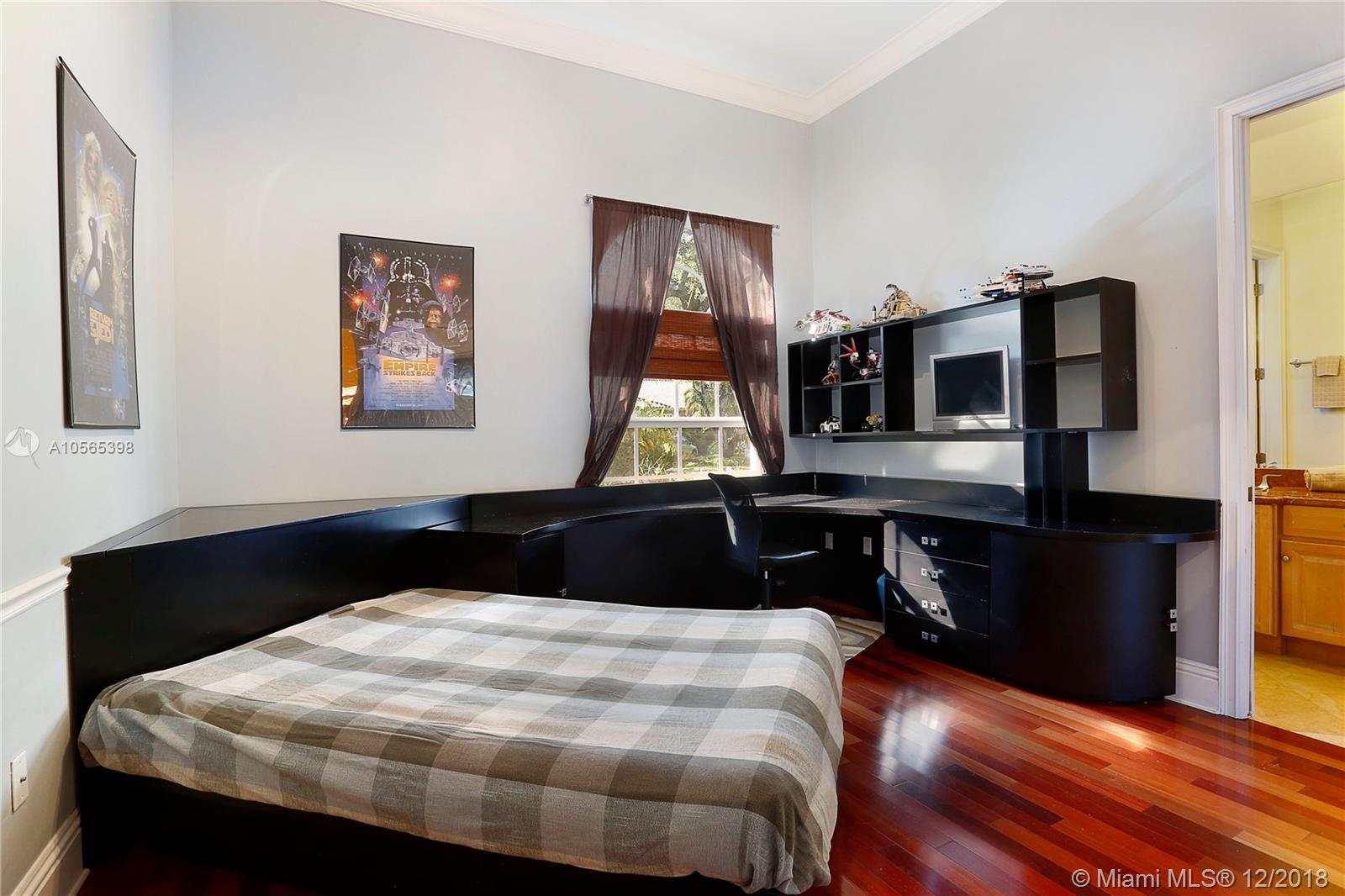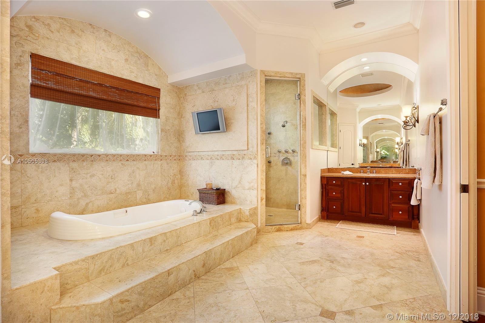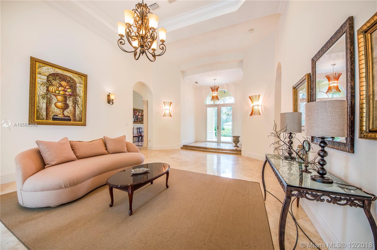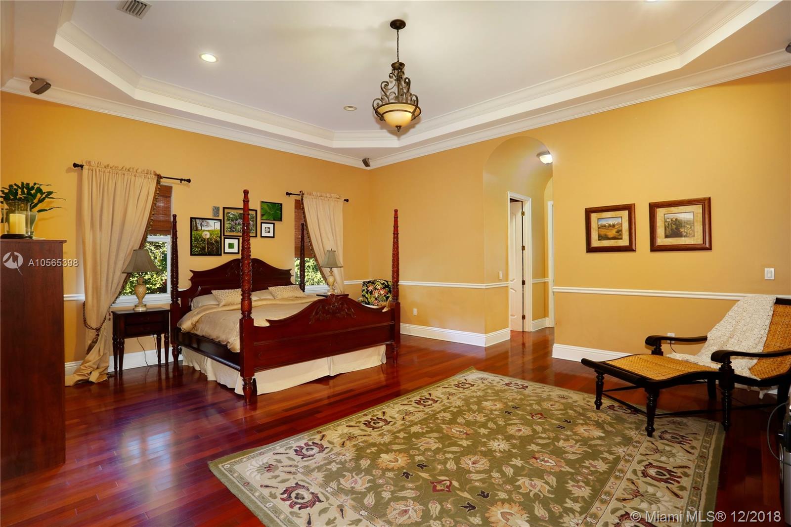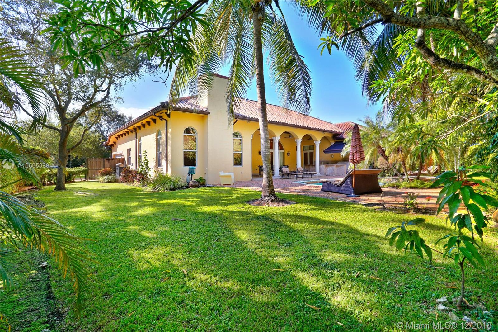 Perfectly Positioned on a Lushly Landscaped Corner lot sits this 2002 Built North Pinecrest Home! Spacious and Elegant floorplan, large open entertaining areas with high ceilings, formal living, and dining rooms, Kitchen cabinetry and millwork is very custom with great detail and high-end Viking appliances, Open Family room concept, Impact windows, fireplace, sleek marble master bath, marble and Brazilian Cherrywood floors, updated baths. House opens to a large covered terrace with outdoor bar area with built-in refrigerator, Chicago Brick patio and pool/spa perfect for entertaining.