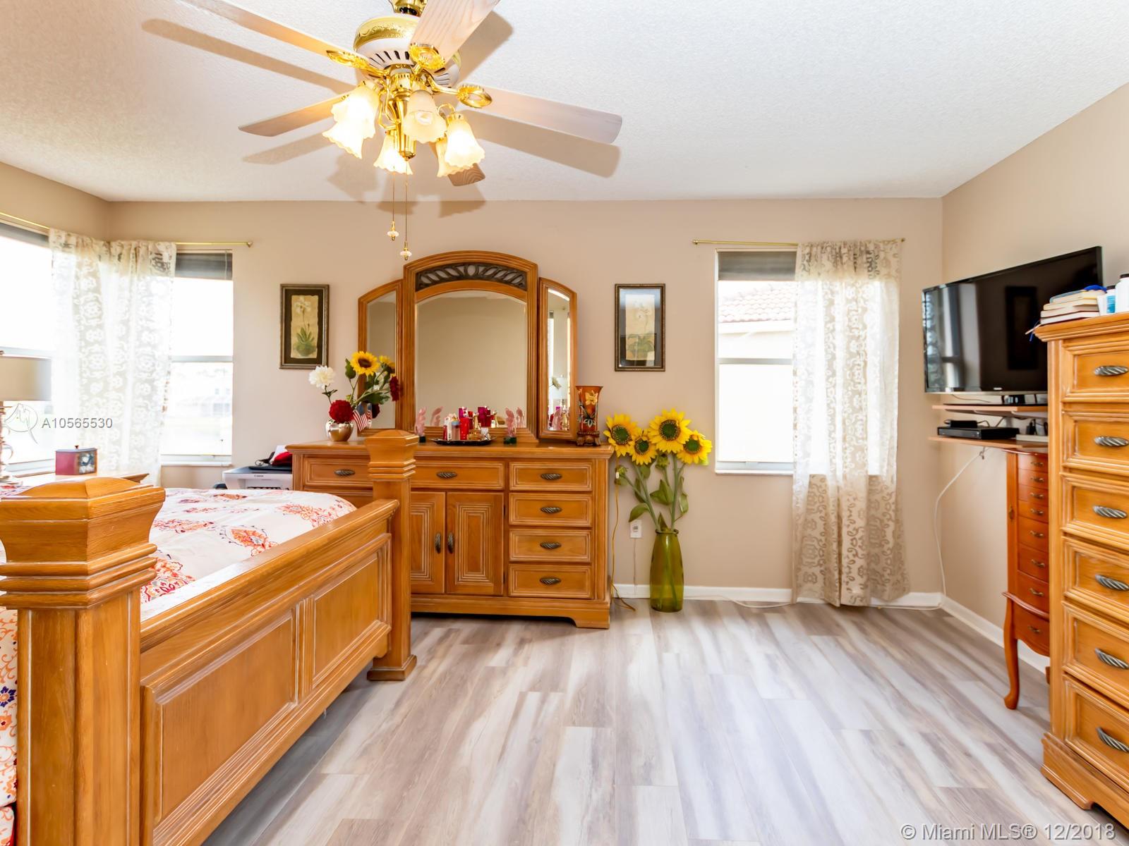 Splendid home with one of a kind majestic views of the lake throughout the living room, family room and kitchen. So much to appreciate,located on a large Pie shape corner lot w/room for a pool in one of the most sought after community in the heart of Pembroke pines.Freshly painted interiors, modern laminate floor upstairs and tiles in all the social area. Kitchen has plenty of cabinets w/ granite counters. Half bathroom conveniently located on the first floor. Extremely spacious & bright, excellent floor plan. Master suite offers a double closet, sitting area and views of the lake. Excellent place to entertain. Offers community pool, playground and security patrol. Accordion shutters for storm protection. Well maintained home ready to move in. Good schools, close to highways and shopping.