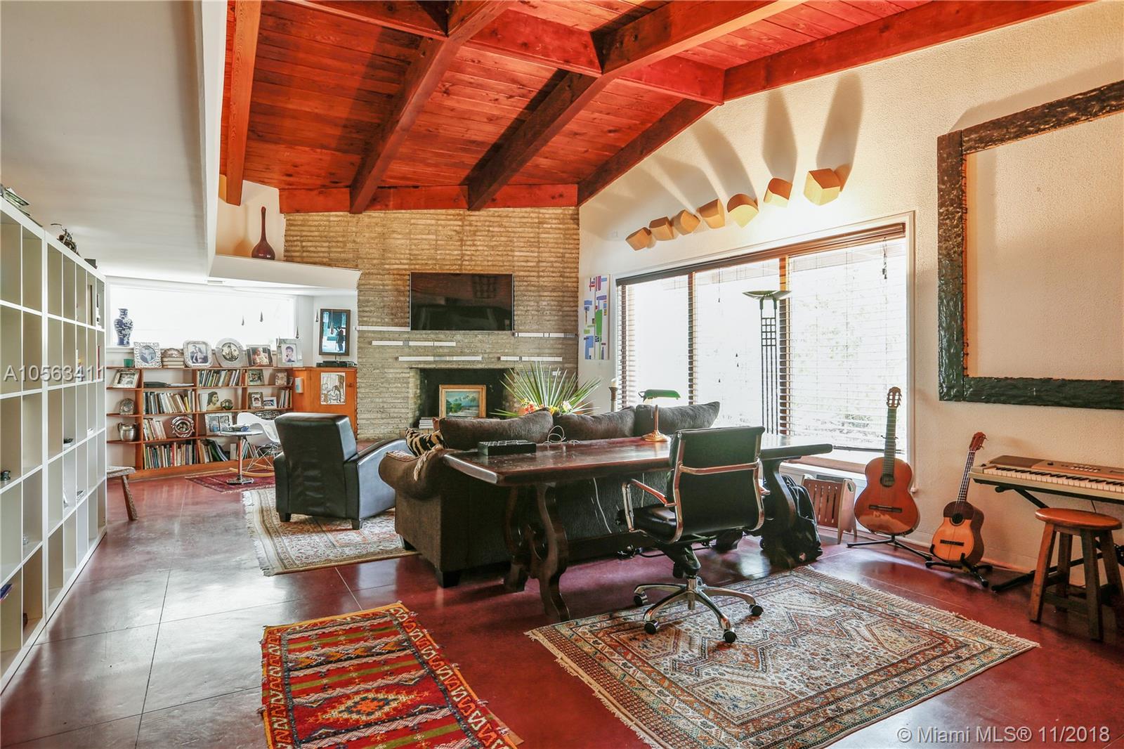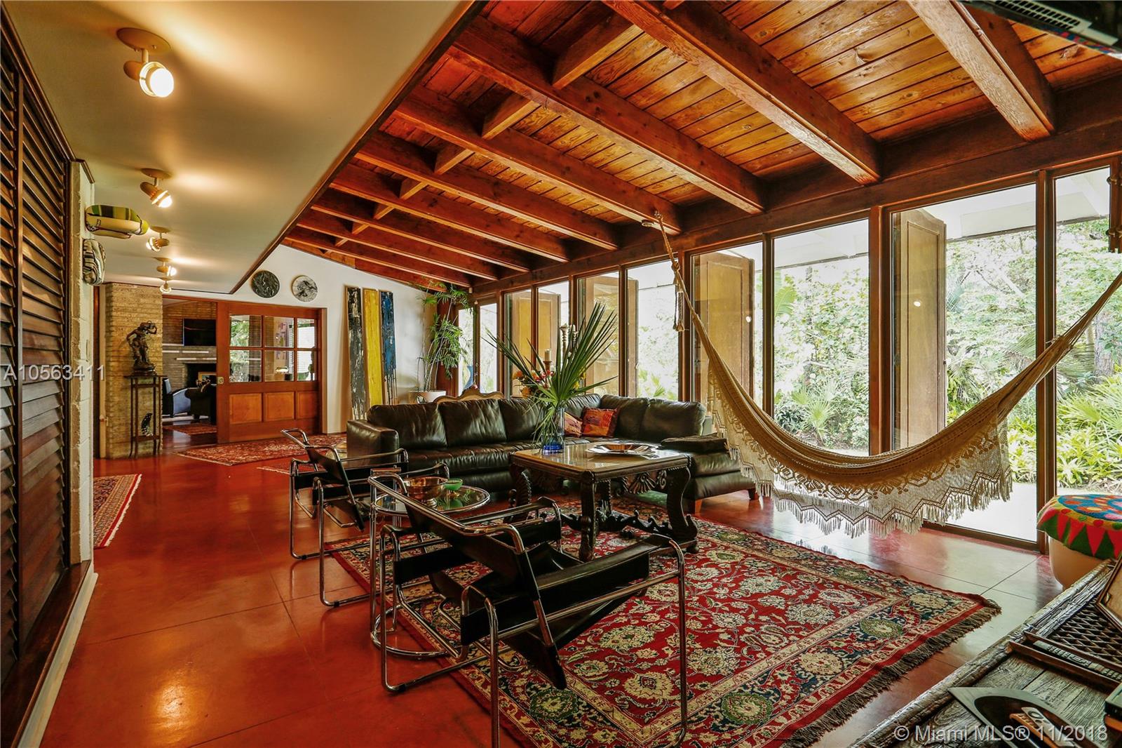 “Casa Ballerina”, an architectural jewel from the 50’s, is back on the market! Nestled on a beautiful builder’s acre lot in the heart of Pinecrest and surrounded by oaks, silver palms, pines, and a charming coral rock wall, sits an original Mid-Century Modern house designed by nationally recognized architect and first Dean at the School of Architecture of the University of Miami, Robert Fitch Smith. Influenced by Frank Lloyd Wright, Fitch-Smith chose to use natural materials throughout his houses. The home features the original red signature concrete & wood floors, Dade Pine vaulted beamed ceilings, block walls, brick fireplace & extensive banks of wood and glass windows. The exterior features irregular lines & sloping rooflines & a separate artist’s studio & cooling entrance breezeway.