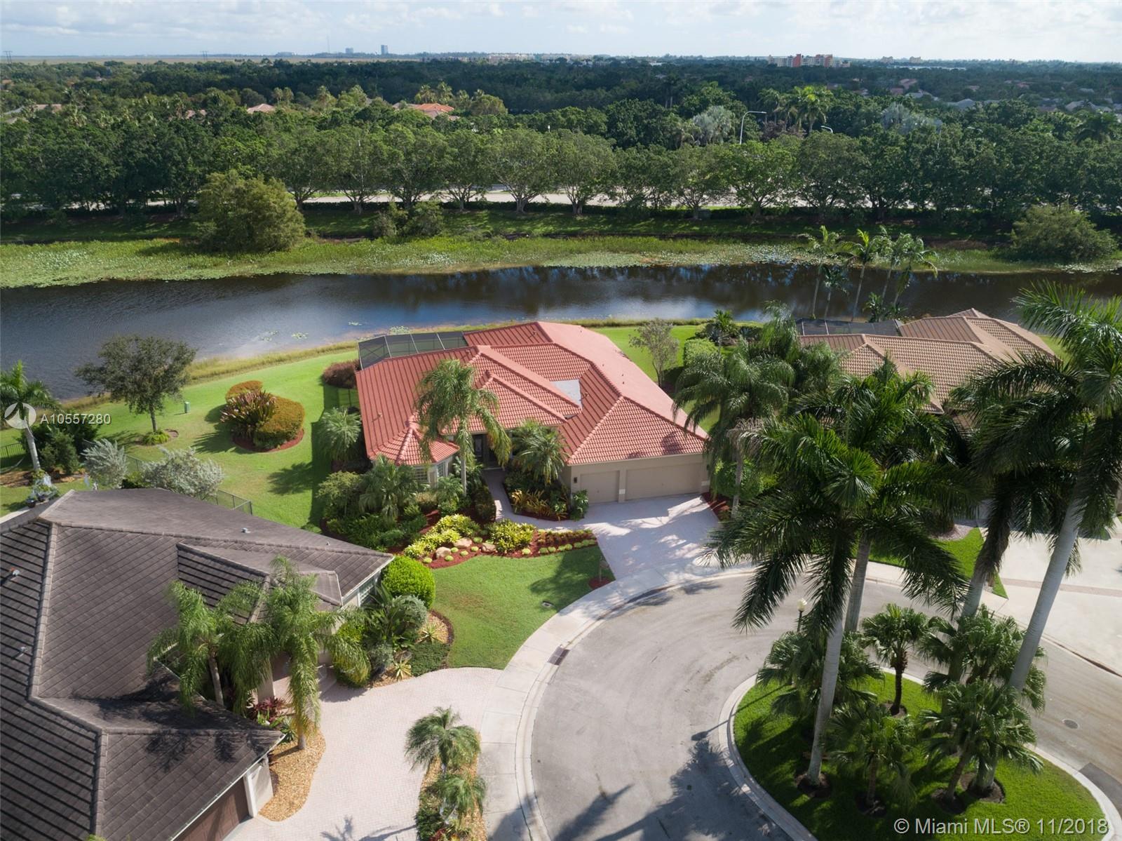 Lottery winning lot in The Landings at Weston. Tucked on an oversized cul de sac lot with long lake views and no neighbors behind. Enjoy four spacious bedrooms three full baths with a three car garage. Diagonal neutral tile throughout living areas with windows on water. White kitchen with stainless steel appliances. Custom home with volume tray ceilings. Triple split floor plan with cabana bath to yard. Screened pool and patio. New exterior and interior paint. NEW ROOF 2018!!