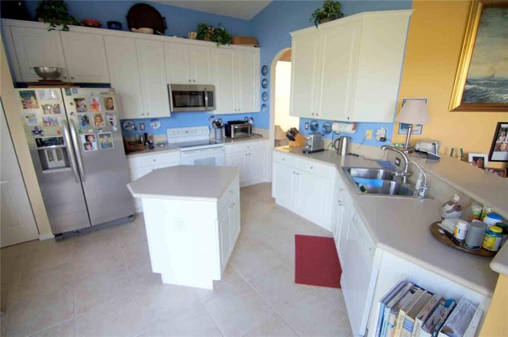Rare ranch style, 3 bedrooms 2 baths, on the water with large patio and room for a pool in the backyard. Large kitchen with Corian tops, bar eating area and center island. The master bedroom features double walk-in closets and large original master bath. High ceilings make this 1825 sq feet of living area seem much larger. Accordion shutters and upgraded garage door are a plus. No association approval needed to buy but needed to lease. The community is gated and offers a clubhouse, exercise room, community pool, cable with HBO, internet and basic home security included.