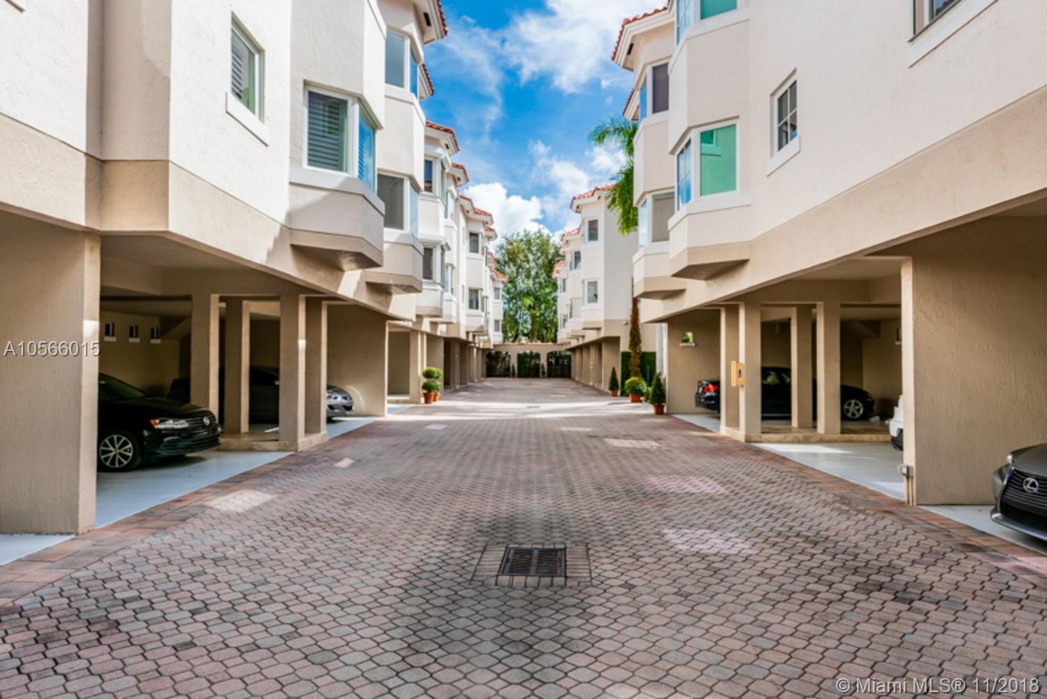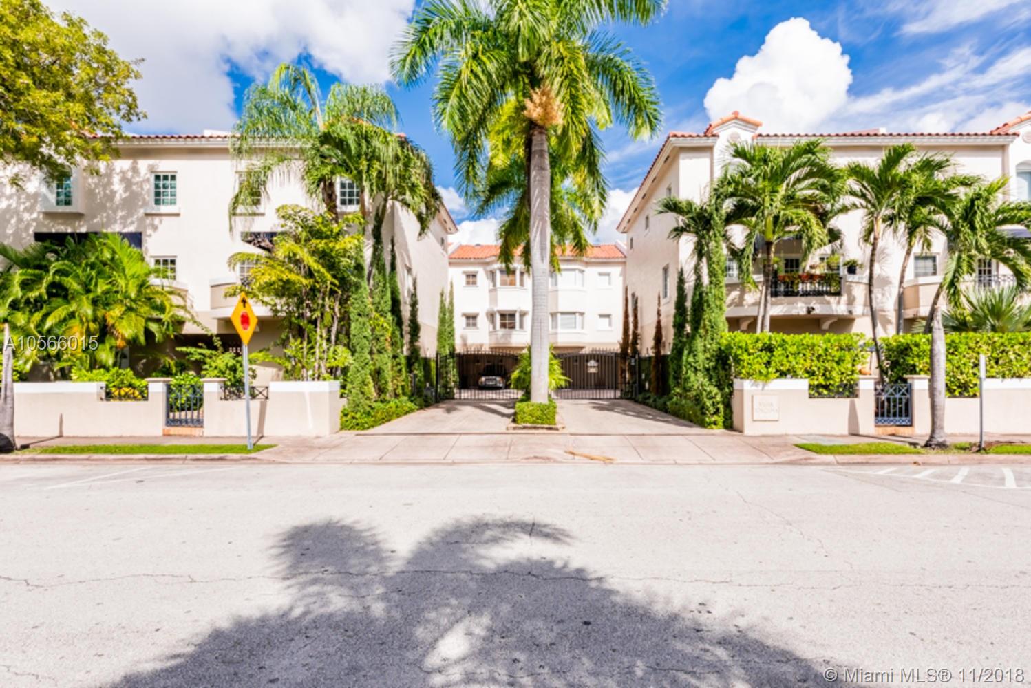 Gorgeous, Immaculate & Updated 3-Story Townhouse in Private & Gated Community, "Gables Court Townhomes" situated in the heart of Coral Gables! Features Private, back patio ideal for entertaining & BBQ. Plenty of upgrades thru-out; Tiled 1st & 2nd floors & Fairly new, laminate flooring on 3rd level. Plantation shutters all around, Nest thermostat & cameras, LED lights, Tankless water heater & New PGT Impact windows, doors & skylight. Open, Eat-in kitchen features Granite tops, Wooden cabinets & Stainless Steel Appliances. All 3 bathrooms are remodeled. Travertine floors & walls on both bathrooms upstairs. Spacious, custom closets. Private 2-car carport. Centrally located..Walking distance to Miracle Mile & Coral Gables Prep. Minutes from shopping & fine dining. Low Maint fee. Call LA.