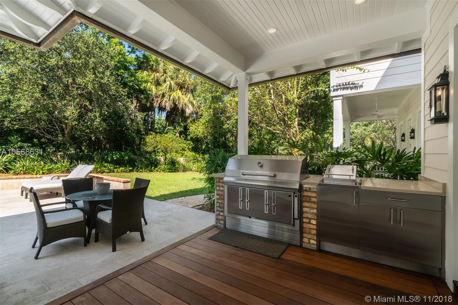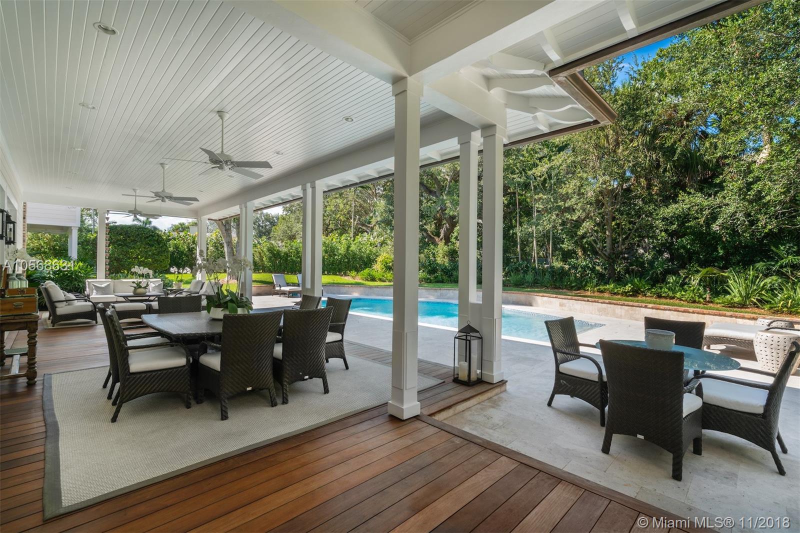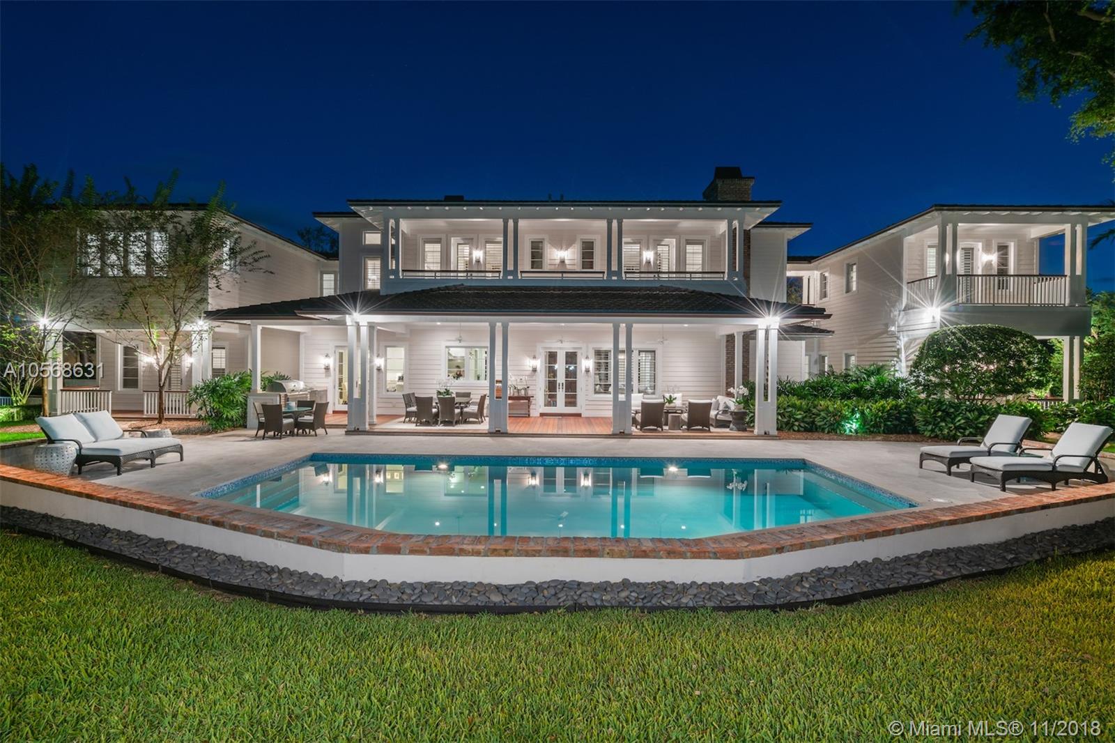 Captivating Plantation-style estate, by renowned architect David Johnson, with the finest modern appointments sitting on a sprawling oak-laden cul-de-sac in Cocoplum Phase 1. Stunning rich wood floors throughout, detailed tongue & groove coffered ceilings, fireplace and built-in bar unites the temperature-controlled wine cellar. The chef-inspired kitchen opens to a large patio w/Summer Kitchen that wraps around the back of the house & overlooks the backyard & swimming pool. First floor has an en-suite guest room, service quarters & powder bathroom. The second floor, accessible also by elevator, has stately Master Suite,3 en-suite bedrooms, add'l family room & a guest suite connected by a covered breezeway. 3-car garage w/height for lifts, if desired. Impact windows & whole-house generator.