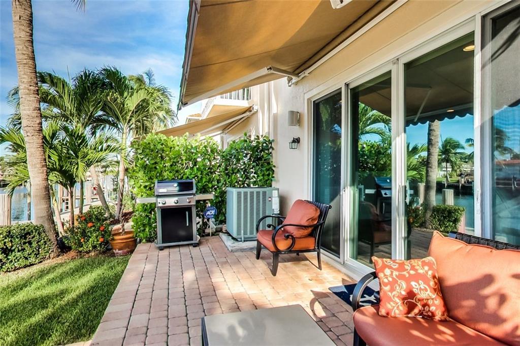 Very rare! Gated waterfront, ocean access, one fixed bridge (US1) unit overlooking wide water with 31' exclusive use boat slip off back patio. Pet friendly! Up to 2 60lb dogs! High ceilings, window treatments, gourmet kitchen with 4-seat bar, wood cabinets with granite counter tops. Very spacious 3/2.5 with full 2-car garage. Retractable awning on back patio for outdoor living area. Impact windows and doors. Heated community pool only 1 townhouse down the dock. Minutes to Fort Lauderdale and beaches. Please see virtual walk-through tour.