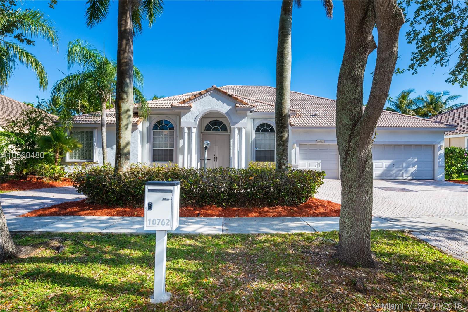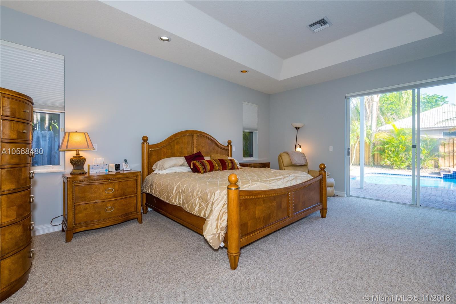 5 BR 3.5 baths home. LARGEST ONE-STORY HOME PRESENTLY FOR SALE IN EMBASSY LAKES, prestigious Embassy Isles section. A rated schools. One BR is converted to a custom 2 person office. Large MB with his and her walk-in closets and vanities plus jet tub. One wing of the home has 3 bedrooms and 2 full baths, including Jack and Jill bedrooms. Large family room. High ceilings. 3 zone AC with all 3 units approx 4-5 yrs new. Freshly painted. New Diamond Brite on pool. Accordion storm shutters. Resort like community pool, tennis, basketball courts, volleyball and playgrounds. Super clean and ready for you to move in