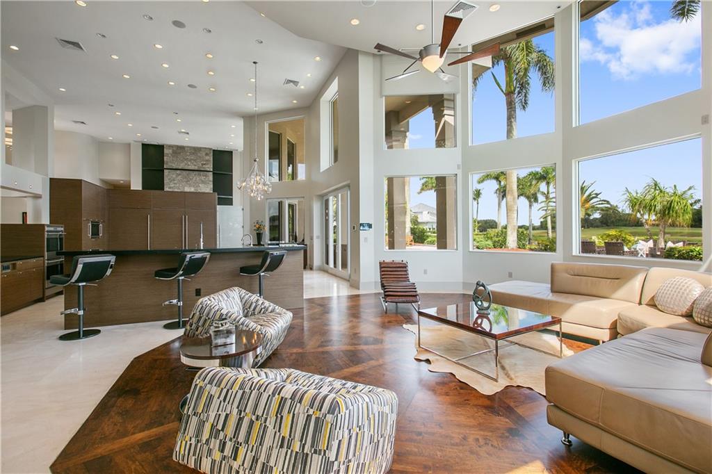 Right off the pages of a design magazine! Magnificent modern 5BR Ensuite+Office/6+1BA/5CG pool home w/ guest wing offers sprawling panoramic golf & lake views on a tremendous 30K+sf lot in the esteemed TPC Golf community of Eagle Trace (there are NO golf equity fees). Completely remodeled in 2012! Perfectly positioned on the 1st hole! This truly is a one-of-a-kind property offering an open floor plan, chef's kitchen w/ gas cooking, full caterer's kitchen, glass wine cellar, media room, gym. 25' ceilings, floor-to-ceiling windows, two fireplaces, impact windows/doors & large motorcourt. 1st flr master suite. Exquisite finishes were hand selected by an esteemed interior designer. Resort-style pool & spa area, summer kitchen, fire pit & expansive loggia. Private, on a cul-de-sac. Low HOA fees