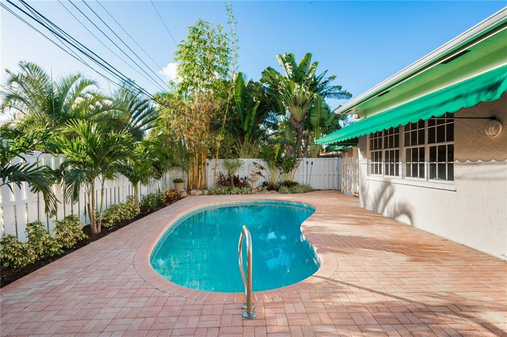 Come see this GORGEOUS 3/3 single family pool home in Fort Lauderdale. Brand New Engineered Wood Flooring throughout entire home. All NEW stainless appliances in kitchen with granite countertops & NEW cabinets. Fully updated bathrooms with seamless glass shower doors. Backyard is a tropical OASIS of palm trees & bubbling fountains surrounding a sparkling pool that was just resurfaced with diamond brite, Fresh paint inside out, driveway & patio pavers redone & sealed. Even the garage has NEW durable epoxy flooring & a second refrigerator. Open floor Plan, large master with French doors leading to the NEWLY landscaped backyard, excellent location within blocks of shopping, restaurants & the BEACH. The attention to detail has left no stone unturned. MUST SEE!