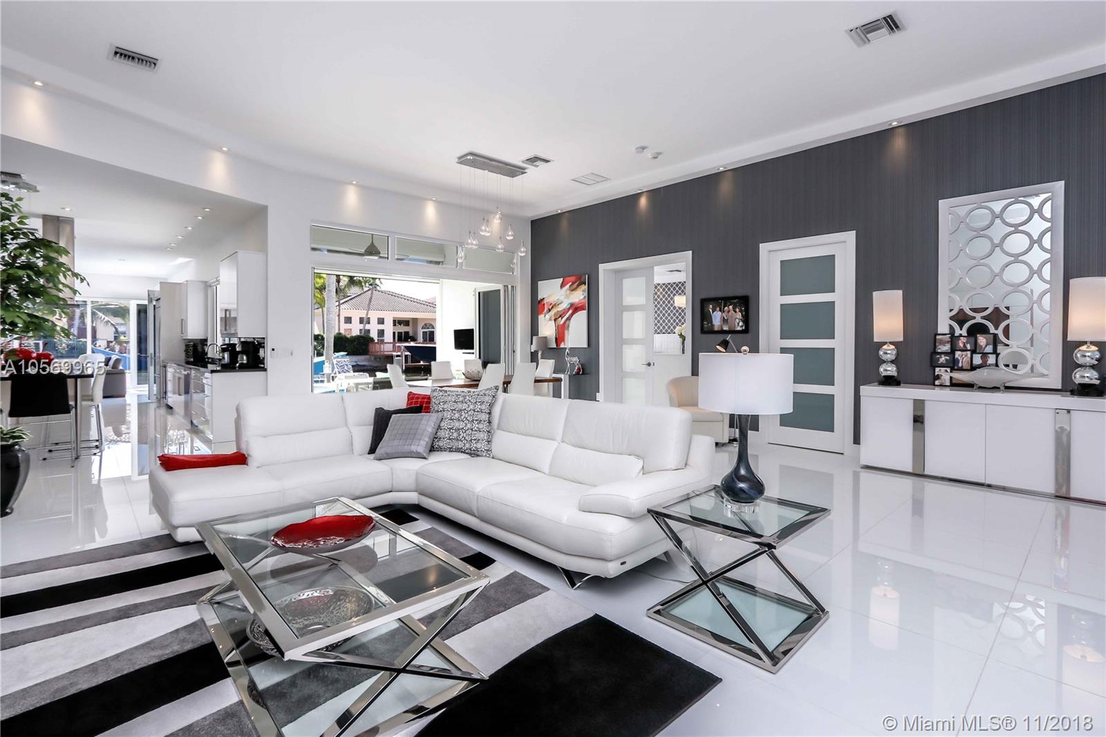 Custom Built Waterfront Home (Complete Remodel 2014) Open Contemporary Concept 3 Bedroom/2.5 Baths, plus Den/Library/Office Space, Living Room, Formal Dining Room, Family Room, with 2 Car Garage, a Beautiful Pool and 60' Dock (renovated 2016)~Direct Ocean Access/No Fixed Bridges~Large Kitchen w/ 15' Island, Granite Countertops~Jenn Air Appliances Include: 30" Induction Cooktop BK, 30" Comb Micro/Wall Oven w/ Convection, Island Hood All SS~Marvel Beverage Center~Impact Doors/Windows~2 A/C's~White 32"x32" Porcelain Glass Flooring Throughout~12' and 10' Ceilings~Pool (Renovated 2015) New Interior Pool Surface and Tile, New Pump and Filter, Salt Water System, Heater, Multi Color Light Inside House~Dock w/ Trex Composite and Power Pedestal Dock