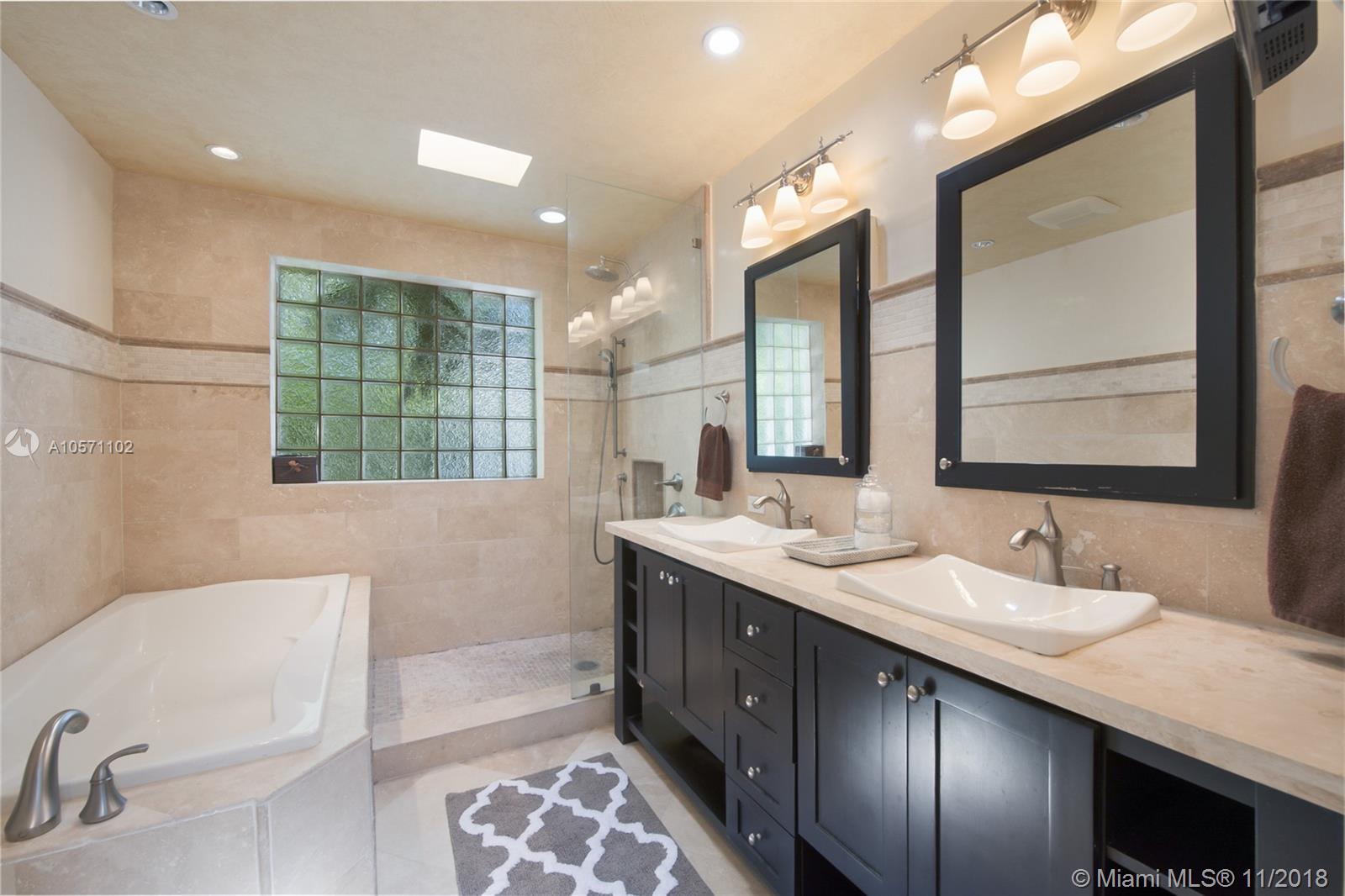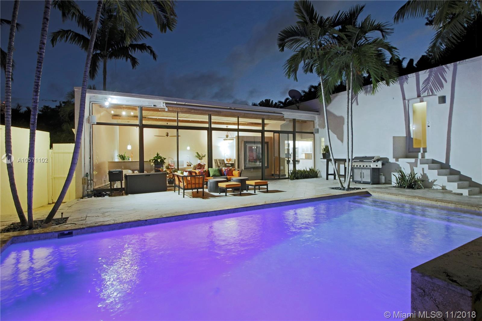 4Bed/3Bath Contemporary Gem tucked away on a quiet cul de sac at a higher elevation in South Grove. The living room and kitchen overlook the beautiful resort style pool and patio area. This home is an entertainer's dream that is not only impressive but comfortable. Updated kitchen with high-end stainless steel appliances, gas range, double oven, cooking island, and updated cabinets with plenty of storage and lighting. 3 bedrooms upstairs and 1 bedroom downstairs. The Master Suite includes a generously sized walk-in closet with an exit to the pool area. Relax in the master bath's jacuzzi tub. Jack and Jill bedrooms upstairs, with in-law's quarters downstairs. Tasteful landscaping with a modern appeal. (Walk to 2 blocks to see the sunrise over Biscayne Bay).