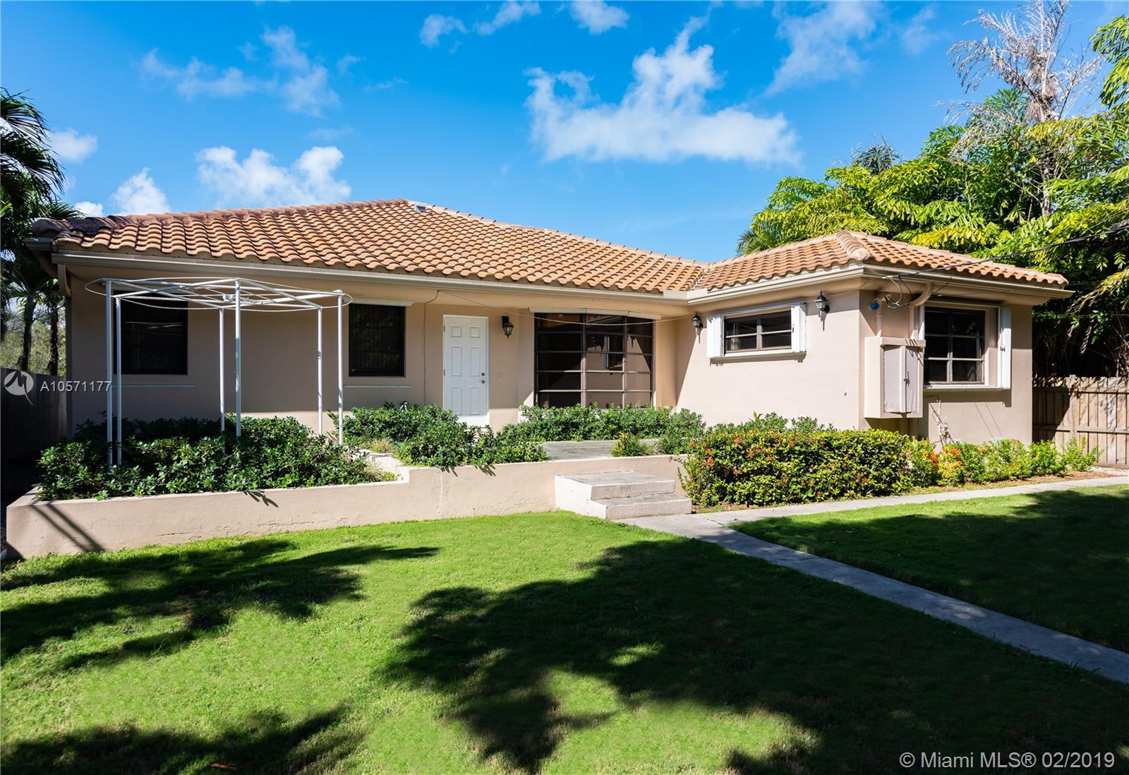 Mid-century Wow! Wide open and spacious, bright and airy this midcentury modern 3 bedroom, 4 bath house is the perfect Miami Beach home. Large family bedrooms, high volume ceilings throughout, formal living room with fireplace, generous family room with cove lighting, formal dining, and eat in updated kitchen. New roof, new central AC, and new hot water heater. Enjoy the 1950s charm or update to your taste. Oversized lot with big beautiful backyard, convenient circular driveway, and welcoming front porch. Close to 41 Street, the heart of Mid Beach! Easy to show.