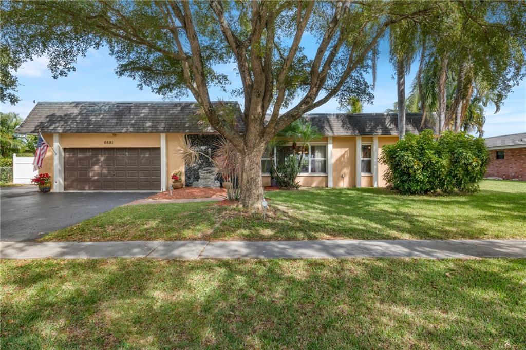 Call this lovely home in the heart of Plantation yours! This 4/2 split plan home sits on a large lake with its own private dock. No HOA restrictions, close to grocery, shopping and easy access to I-595. Very close to elementary, middle and high schools, a dog park and Heritage Park. Updated solid cherry wood kitchen includes double ovens and stainless appliances with Volga Blue granite counter tops, opening out to a spacious covered patio Wired smart home security system with beautiful views as well as a home stereo system. Impact windows, doors and garage door, 2016 Trane A/C with Wi-Fi control thru the Honeywell Therm. app. Both bathrooms remodeled. High end washer/dryer with interior laundry room. Locals enjoy fishing, and kayaking around this lovely lake. Call to see!