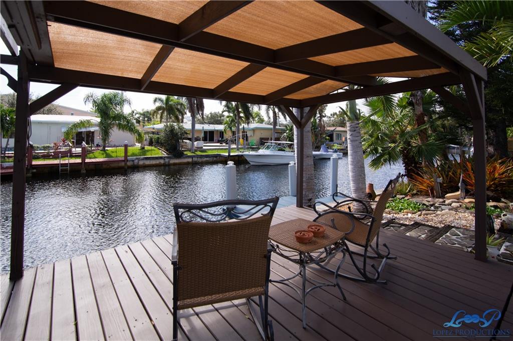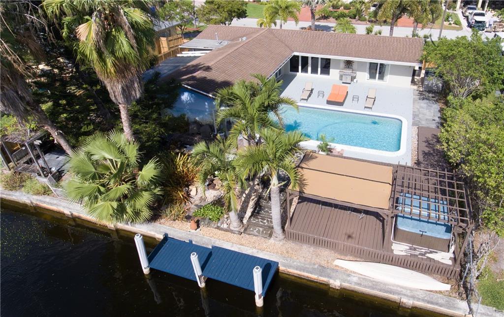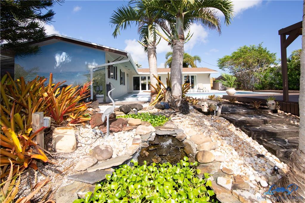 This move-in ready home is a beautifully renovated waterfront property with ocean access east of 95! Many features of this home have been updated, including kitchen, flooring, bathrooms, newer appliances, and partial impact windows (full panel covering for other windows). The backyard is an incredible space for entertaining, with a pool, hot tub by the water, coi ponds, and multiple sitting/lounge areas. The stove and water heater are gas, back yard is fenced in, extra storage area outside, dead-end street, built-in office, and a circular driveway with great parking space. This home is currently configured as a 3 bedroom with a den, but can be used as a 4 bedroom