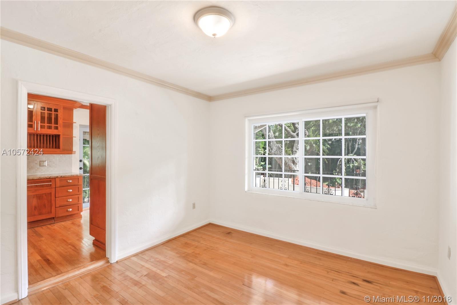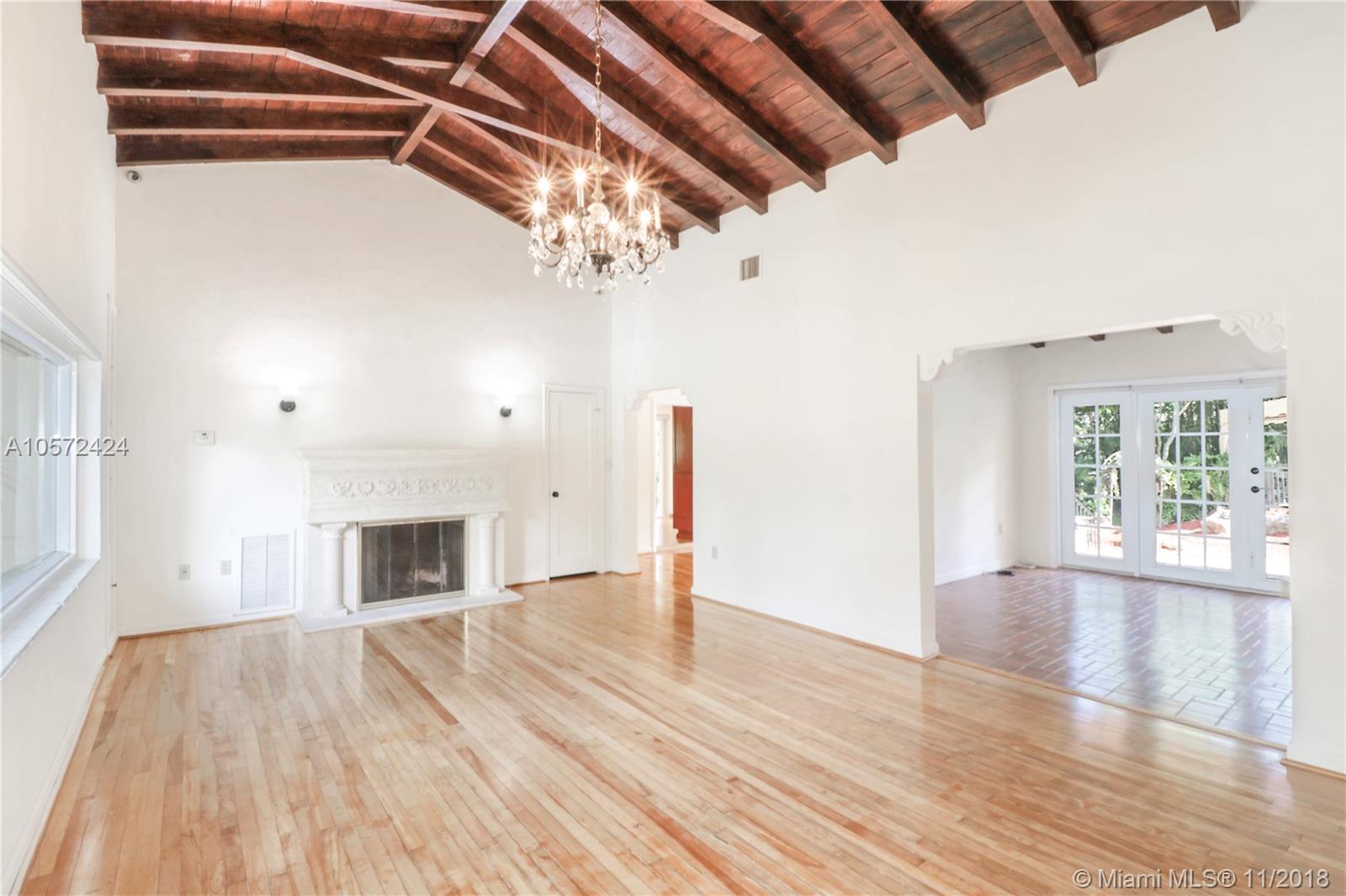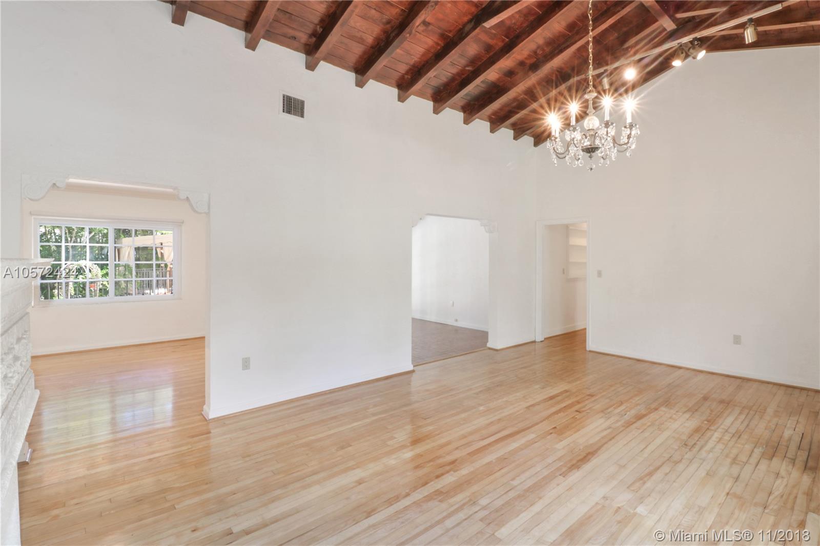 Prime Location! Charming and spacious 3 bed 3 bath pool home with 1 car garage sitting on an oversized Coral Gables lot (13,100 sq ft). Features formal living room with vaulted ceilings and exposed wood beams, adding to the character of this beauty. Formal dining and family room, a beautiful eat-in kitchen nook overlooking the large backyard and patio areas leading out to a good size salt-water pool; perfect for entertaining! Impact windows throughout give natural bright light, good size bedrooms w/ walk-in closet in master, and the wooden floors further accentuate the Coral Gables Charm. Conveniently located less than a mile away from The Biltmore Hotel and the newly refined Streetscape of Miracle Mile, for all your fine dining and shopping/entertaining experience. Truly a must see.